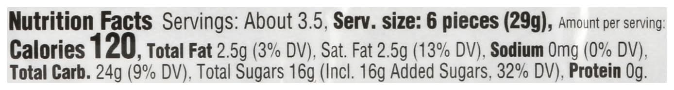 Ingredients: Made of: Sugar Corn Syrup, Hydrogenated Palm Kernel Oil; Less than 2% of: Citric Acid, Tapioca Dextrin, Gelatin, Apple Juice from Concentrate, Modified Corn Starch, Natural and Artificial Flavors, Color (Red 40)