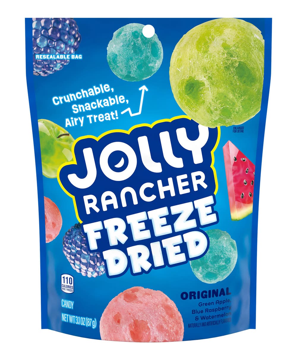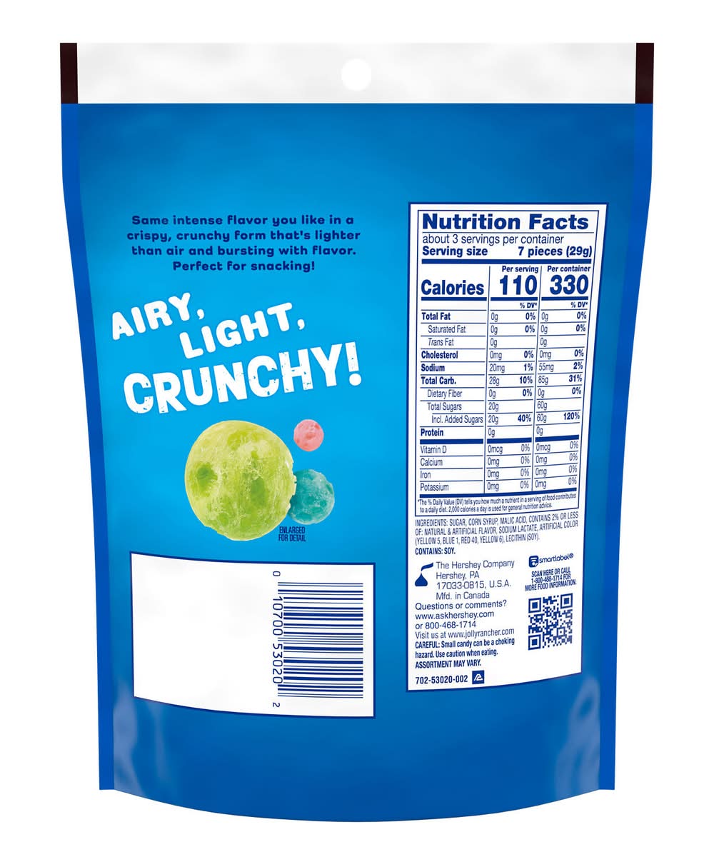 The same intensely fruity flavor you already know and love in a crispy, crunchy form that's lighter than air and bursting with flavor? You wouldn't have thought it possible if you didn't know JOLLY RANCHER Freeze Dried candy. Enjoy your favorite JOLLY RANCHER candy flavors like green apple, blue raspberry and watermelon in an unwrapped, utterly snackable treat like never before. Crispy, crunchy, chewy, juicy – experience it all in a single bite. Share with friends and family during movie night, bring a bag to school or work to snack on or simply stock your pantry for whenever the moment feels right. Delight your taste buds with these unbelievably airy fruity treats for an anytime snack everyone will want to try. Enjoy these uniquely light and crunchy candies during the holidays, too. Stuff Christmas stockings, fill Easter baskets, create Valentine's Day party favors and make Halloween trick or treat bags for everyone you love. You can even include them in your covered candy dish displays for a pop of brilliant color. Just don't forget to save a bag for yourself! For a snacking experience that keeps your taste buds busy during movie nights, lunch breaks and snack breaks, Freeze Dried candy is the perfectly poppable treat for you. • Brand: Jolly rancher • Flavor: Assorted