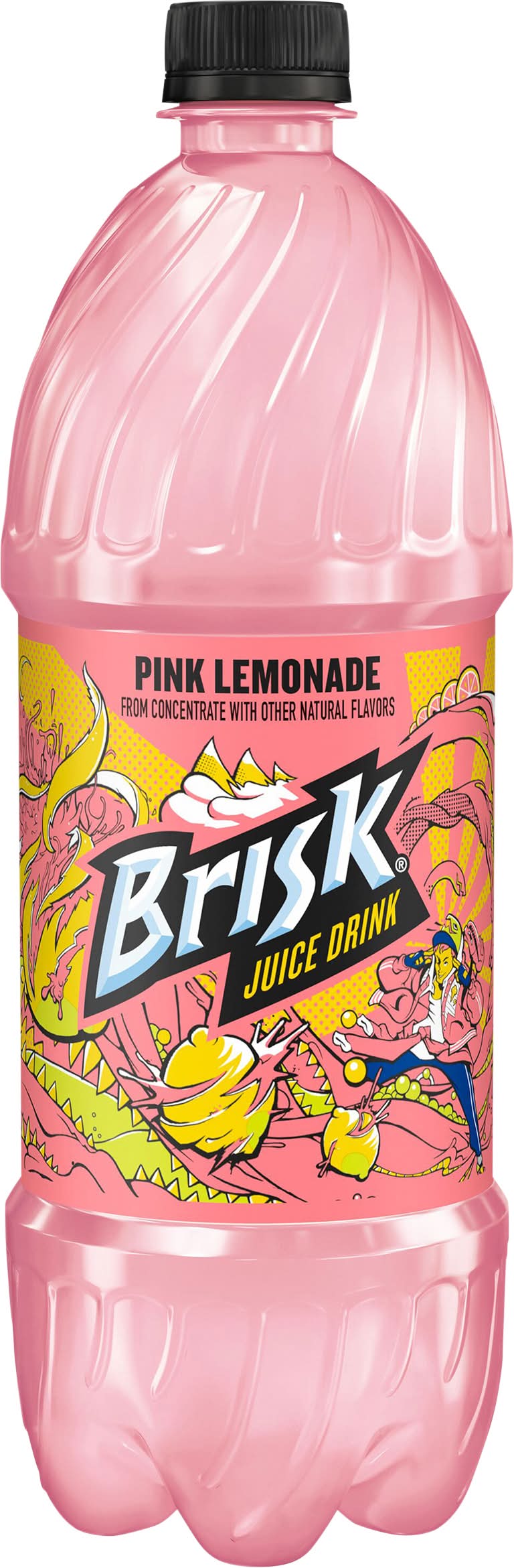 This Juice crafted from concentrate and complemented by other natural flavors. In line with environmental responsibility, consumers are encouraged to recycle the packaging after enjoying the beverage. • Brand: Brisk • Flavor: Pink lemonade • Packaging: Reusable