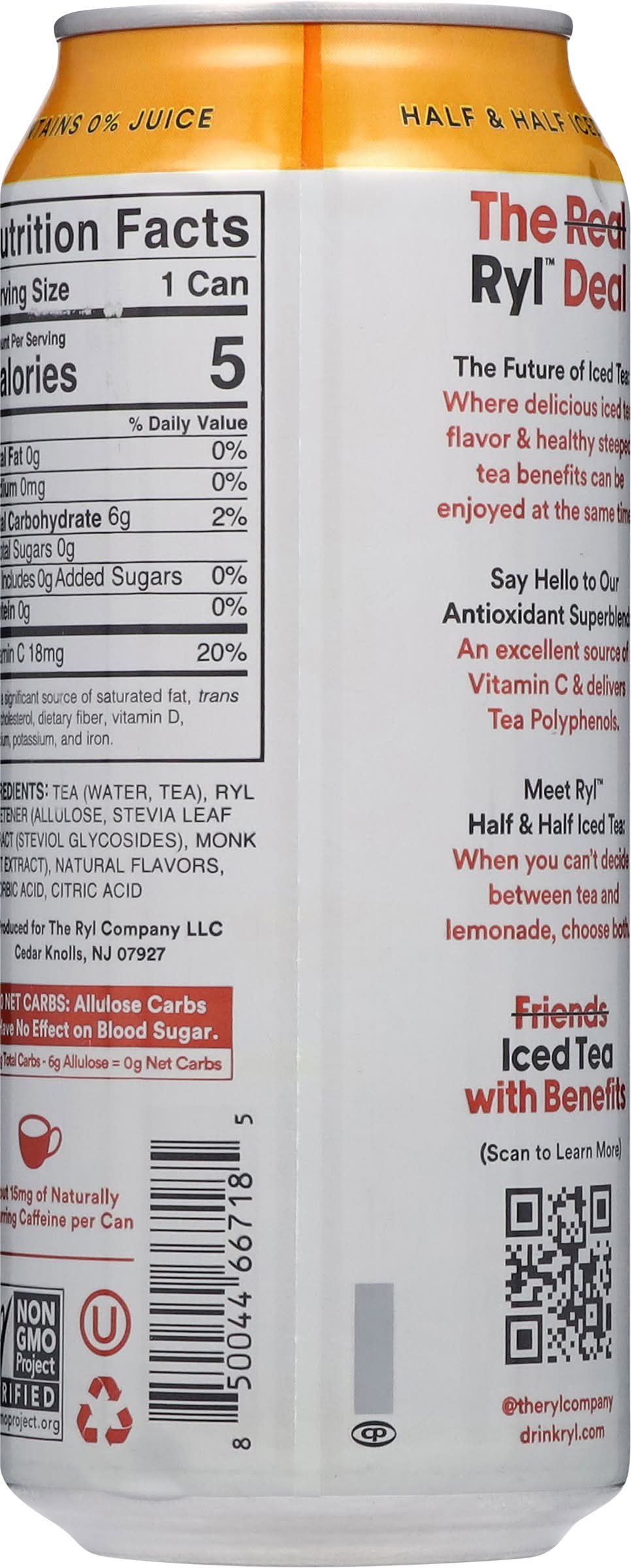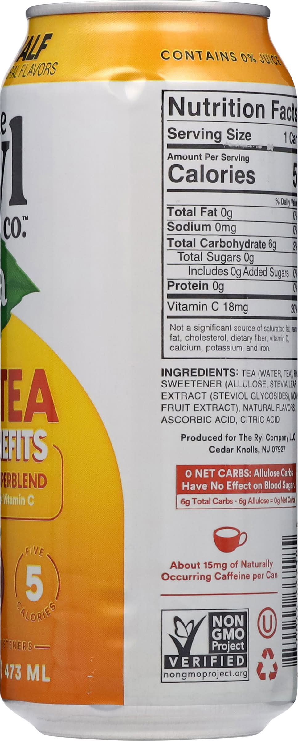 Ingredients: Tea (Water, Tea), Ryl Sweetener (Allulose, Stevia Leaf Extract (Steviol Glycosides), Monk Fruit Extract), Natural Flavors, Ascorbic Acid, Citric Acid