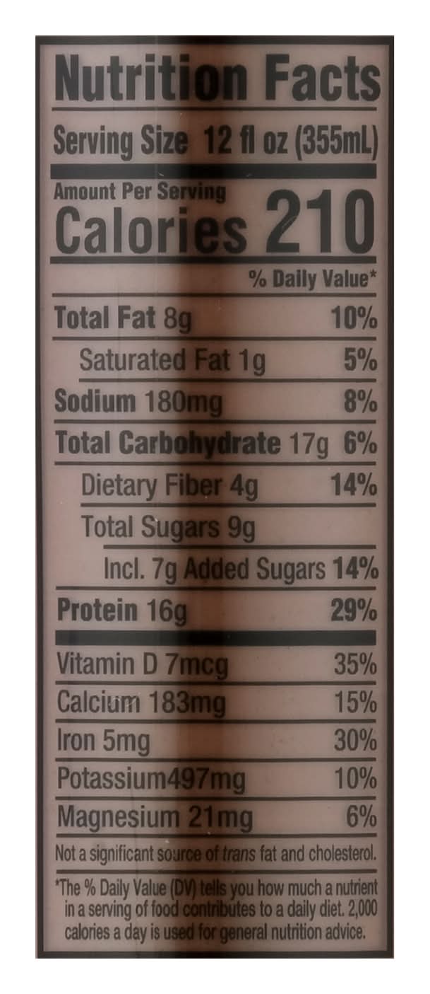 Ingredients: Organic Almond Milk (Water, Organic Almonds), Organic Pea Protein, Organic Coconut Sugar, Organic Cacao Powder, Organic Dates, Organic Hemp Seeds, Organic Natural Flavor, Organic Gum Acacia, Gellan Gum, Organic Cinnamon, Organic Sunflower Lecithin, Organic Maca, Vitamin Blend (Calcium Derived from Seaweed, Vitamin D), Guar Gum, Organic Stevia Extract, Organic Ashwagandha Extract Ksm-66, Sea Salt, Organic Prebiotic Powder (Derived from Tapioca) Contains: Tree Nuts, Almonds, Tree Nuts, Coconuts