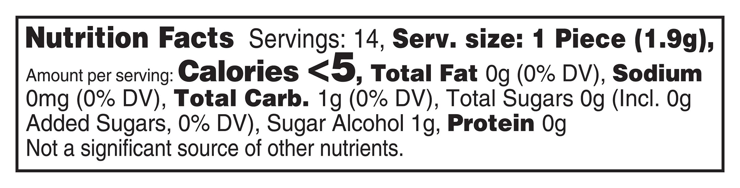 Ingredients: Made Of: Sorbitol, Gum Base, Glycerol, Natural and Artificial Flavors, Less than 2% of: Hydrogenated Starch Hydrolysate, Aspartame, Mannitol, Acesulfame K, Soy Lecithin, Xylitol, BHT (To Maintain Freshness), . Contains: Soybeans