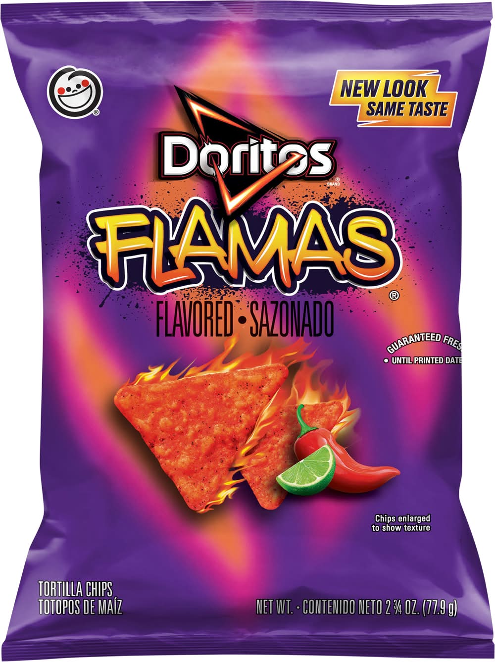 Spicy Doritos with a hint of chile and lime. • Brand: Doritos • Flavor: Flamas • Frito-lay, inc., Plano,TX,75024-4099