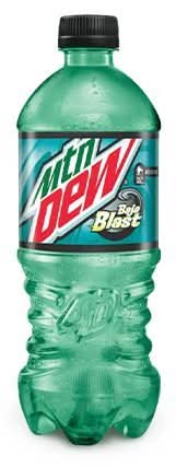 Soft Drink is a carbonated beverage available in a bottle, uniquely combining the bold flavor of Mtn Dew with a hint of tropical lime. It is suitable for consumption on the go. • Brand: Mountain dew • Flavor: Baja blast