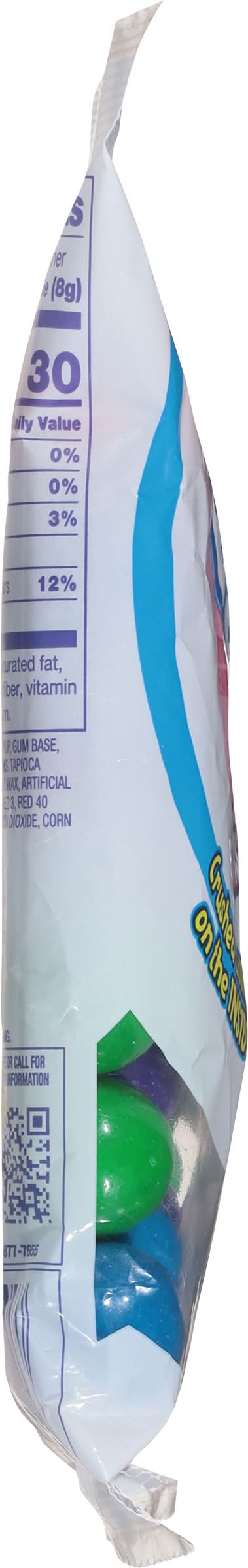 Ingredients: Sugar, Dextrose, Corn Syrup, Gum Base, Citric Acid, Gum Arabic, Artificial Flavors, Tapioca Dextrin, Confectioners Glaze, Carnauba Wax, Artificial Colors (FD&C Red 40, Blue 1, Yellow 5, Red 3, Red 40 Lake, Blue 1 Lake, Yellow 5 Lake), Titanium Dioxide, Corn Starch, BHT (to Maintain Freshness) Contains: Corn, Milk, Soybeans