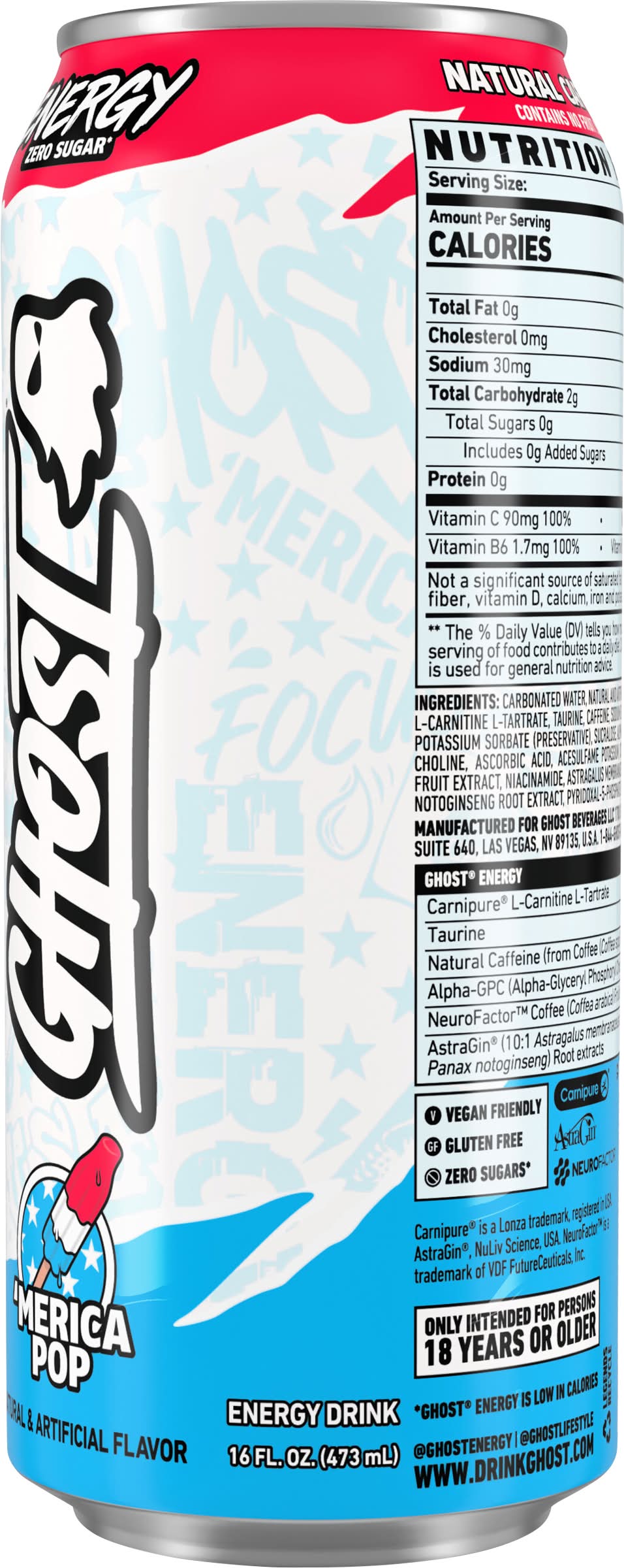 Ghost Zero Sugar Energy Drink, Merica Pop (16 fl oz)