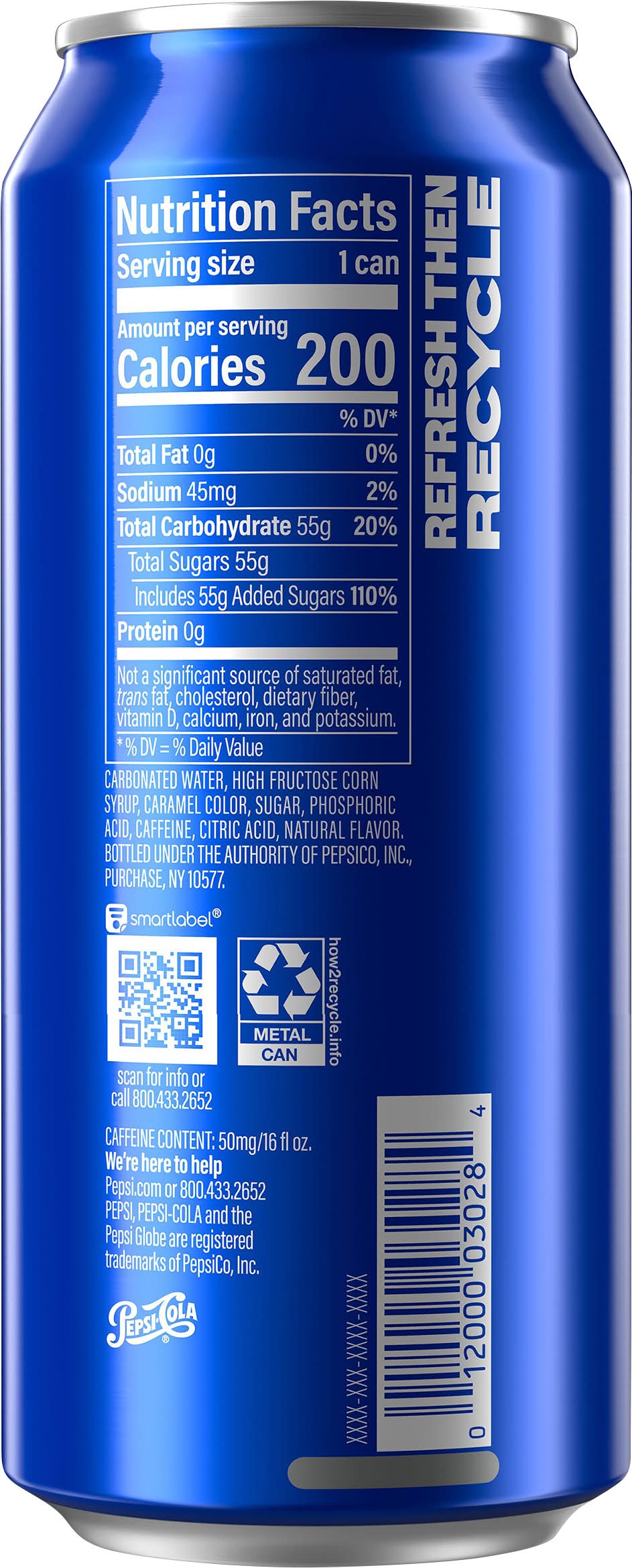 Ingredients: Carbonated Water, High Fructose Corn Syrup, Caramel Color, Sugar, Phosphoric Acid, Caffeine, Citric Acid, Natural Flavor Contains 50mg of caffeine