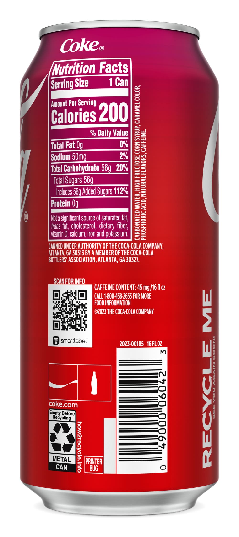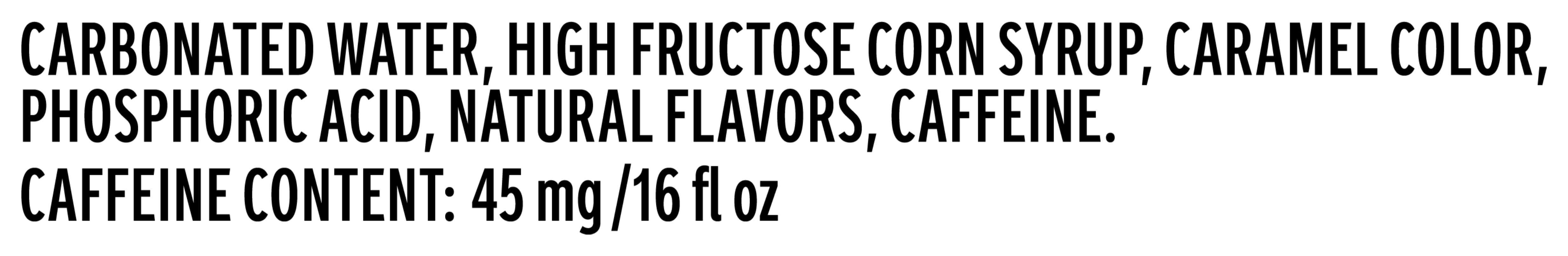 Ingredients: Carbonated Water, High Fructose Corn Syrup, Caramel Color, Phosphoric Acid, Natural Flavors, Caffeine.