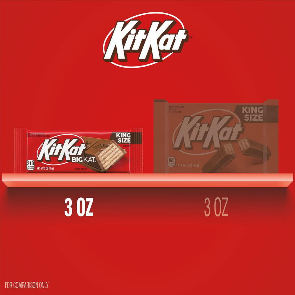 For those that desire a mighty crunch, look no further! Satisfy any candy lover with a wafer bar. Featuring a fun twist on a classic candy, this king size wafer candy snaps apart into thick sections. These chocolate wafer bars are made with the same crispy wafers covered in creamy milk chocolate that made the original candy bar an icon, but now they're even thicker for a more satisfying bite. Preparing for a specific occasion? Whether you need to put Easter baskets together, stuff holiday stockings, fill Valentine's Day party favors, treat trick-or-treaters or just keep your everyday candy collection stocked throughout the year, milk chocolate wafer candy is the way to go. Getting ready for your next movie night? Add some crispy wafers coated in creamy milk chocolate for an extra special touch that satisfies the whole crowd. You can snack on this chocolate bar straight from the wrapper, chill it in the fridge for a cold treat or top your best baked goods with thick milk chocolate wafer sections to show off your culinary genius. No matter what you decide, it's bound to be a delicious success! Brand: Kitkat