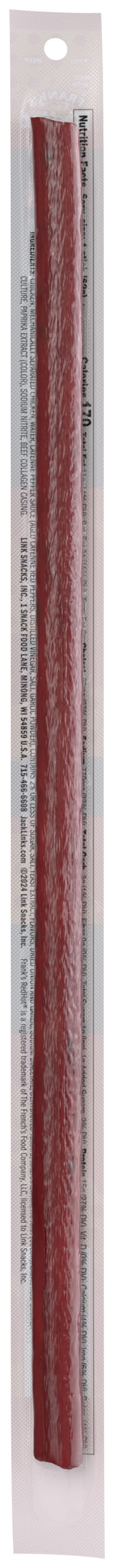 Jack Link's® Wild® RedHot Chicken Stick is sure to wake up those taste buds! Savory chicken has been slowly cooked and seasoned with Frank RedHot hot sauce for delicious flavor with a satisfying kick of heat. Each serving packs in 7 grams of protein. A must-have snack for your next adventure! Brand: Frank's redhot