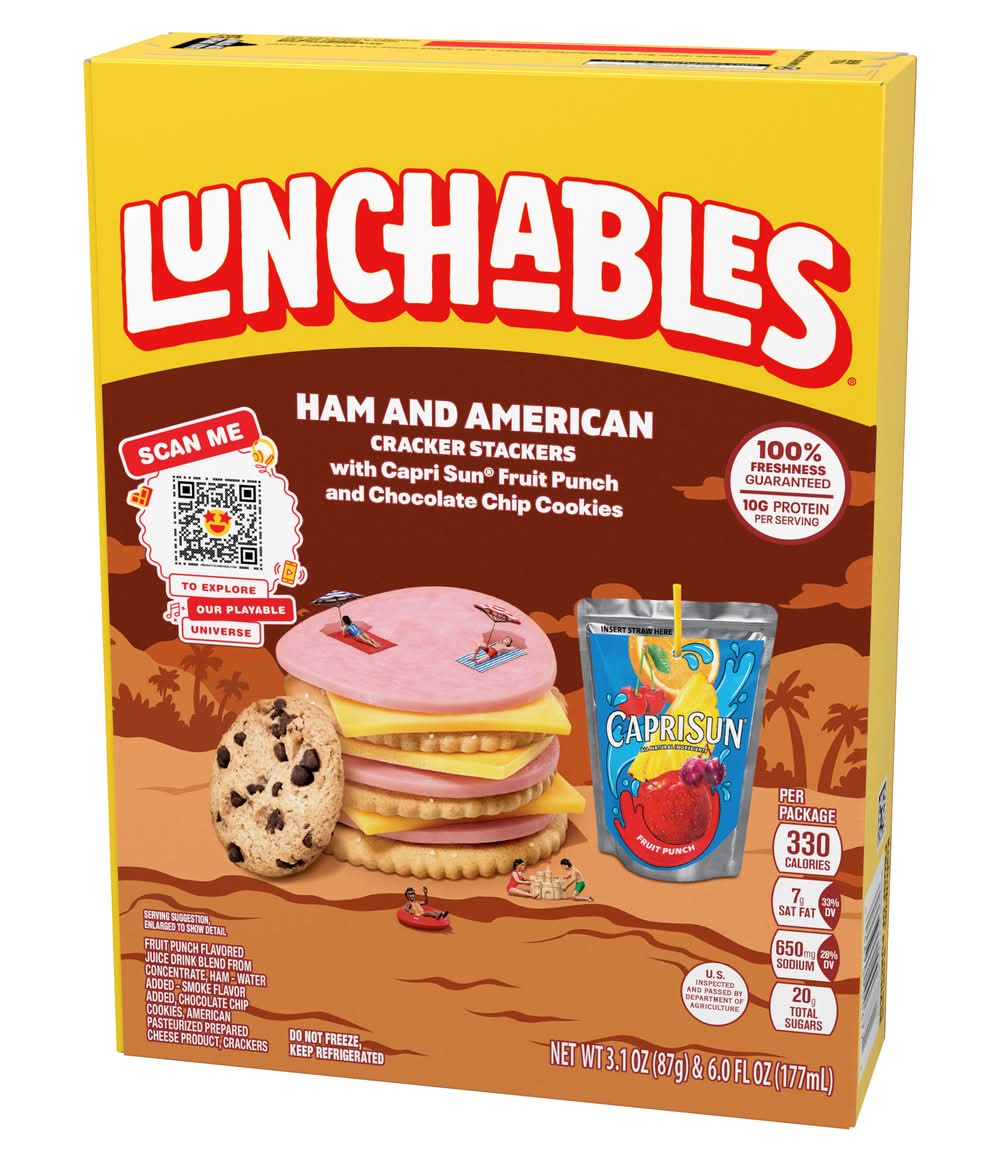 Race to win 1 of 300 Nintendo Switch Prize Packs that include a download code for a digital game and a set of Joy-Con controllers! Powering kids forward, our Lunchables Ham and American Cracker Stacker Kit is the perfect option for a convenient meal kids will enjoy any time of day! Our lunch kit features real, epic food including water added Oscar Mayer lean ham, Kraft American pasteurized prepared cheese product, crackers, a juicy Capri Sun Fruit Punch drink and a delectable chocolate chip cookie for a dessert treat. Great for on the go, each ingredient comes in its own individual compartment in our serving tray, making it easy and fun to build your own unique combinations. Every 9.1 ounce box contains 10 grams of protein and 1 gram of fiber per serving. Keep our convenient single-serve, on-the-go package refrigerated until it's time for school, lunchtime or everyday snacking. • Brand: Lunchables • Kraft Heinz Foods, 1 PPG Place Suite 300, Pittsburgh, PA 15222