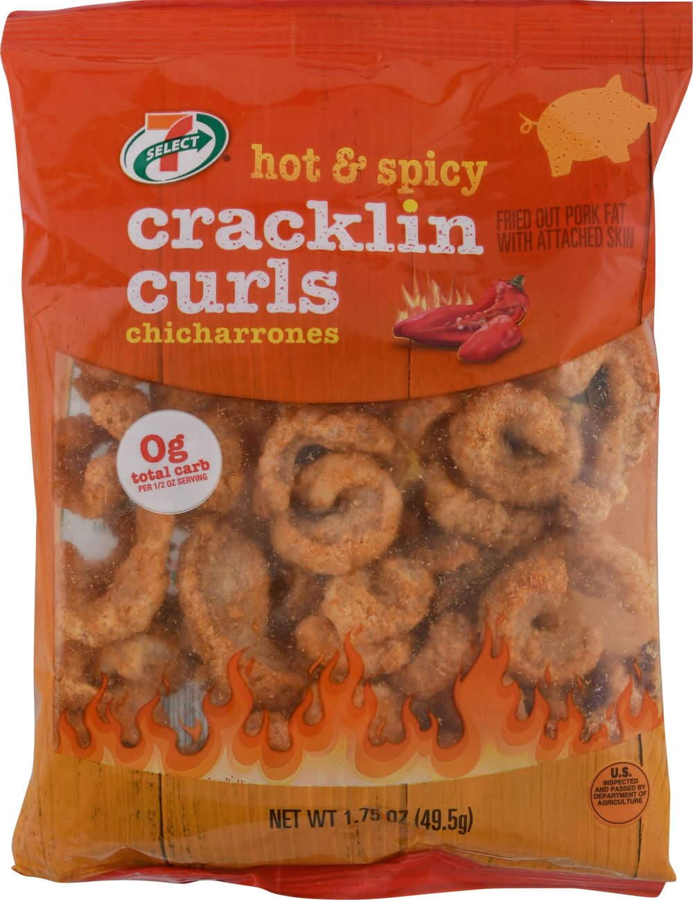 7-Select Cracklin Curls Pork Rinds, Hot & Spicy (1.75 oz)