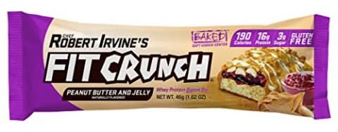 This peanut butter and jelly protein bar takes you back to your childhood days with a smooth, rich, nutty peanut butter outer layer coating accompanied by a sweet, thick inner layer of jelly that’s topped with crunch that’s out of this world. 30g of protein. • Brand: Fit crunch • gluten-free