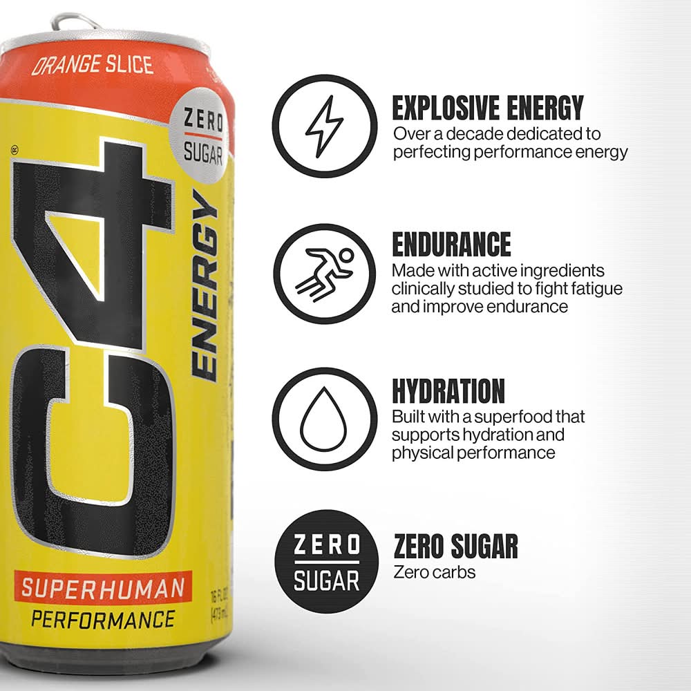 C4 Super Human Performance Energy Drink, Orange Slice (16 fl oz)