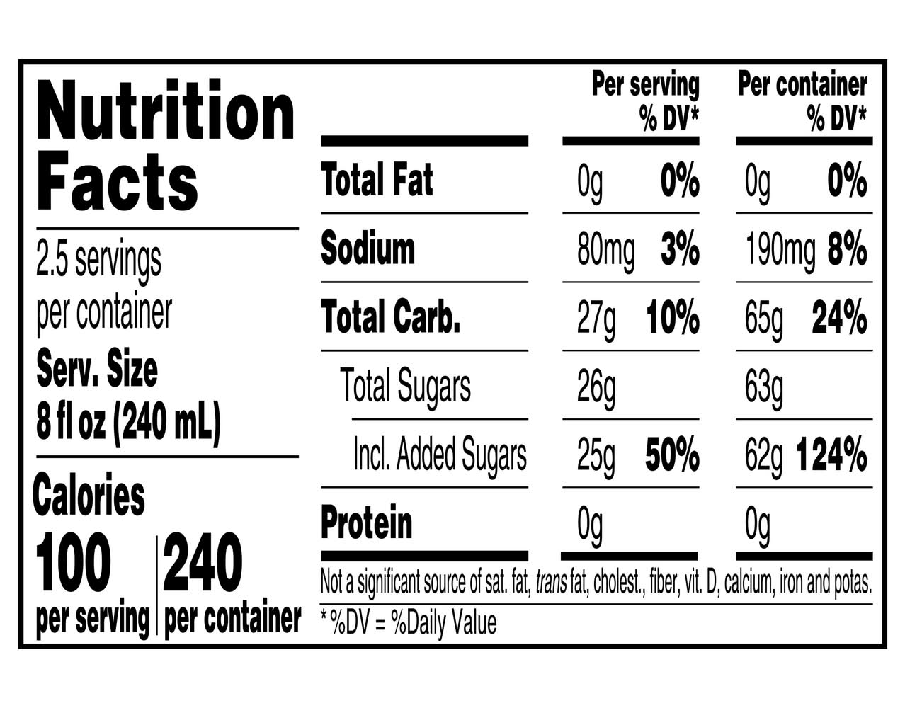 Ingredients: Pure Filtered Water, High Fructose Corn Syrup, Pear Juice from Concentrate, Less than 0.5% of: Raspberry Juice from Concentrate, Natural Flavors, Citric Acid (Provides Tartness), Modified Cornstarch, Glycerol Ester of Rosin, Sodium Hexametaphosphate and Sodium Benzoate and Potassium Sorbate and Calcium Disodium EDTA (to Protect Taste), Blue 1