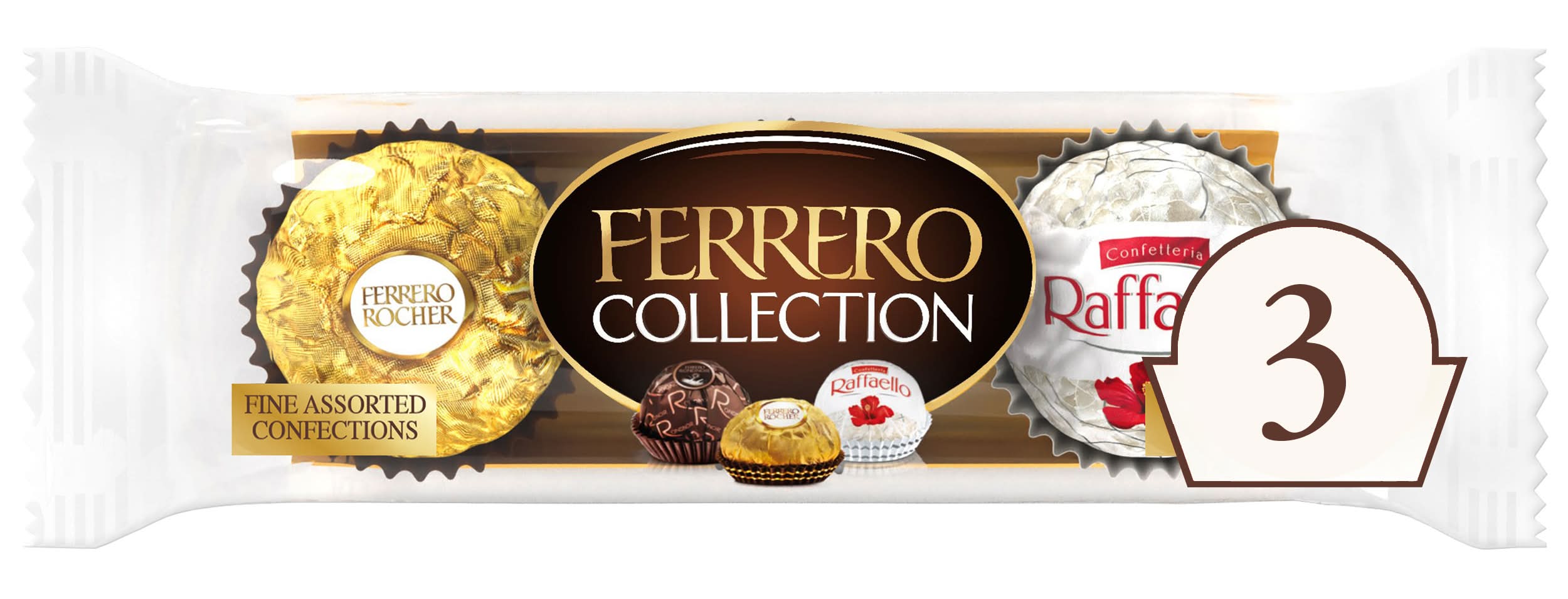 If you love Ferrero Rocher, you will love this 3-count Ferrero Collection chocolate. An exquisite collection of delicious confections crafted from milk and dark chocolate as well as coconut almond truffles, the Ferrero Collection gift box features original, iconic Ferrero Rocher, lusciously layered Raffaello and delicious dark chocolate Rondnoir truffles. Each and every piece is made from the highest-quality ingredients and presented in an elegant diamond-cut gourmet chocolate gift box. Perfect for sharing and gifting, because there is something for everyone in this elegant box of assorted chocolates. Savor the variety of unique delights with this Ferrero Collection. Since the 1940s, Ferrero has delighted consumers with premium, one-of-a-kind chocolate treats. What began as a local pasticceria in Italy’s Piemonte region is now one of the world’s most popular confectioners, satisfying cravings in over 100 countries worldwide. Thanks to a commitment to quality, freshness and a unique taste experience, Ferrero continues to delight chocolate lovers all over the world.