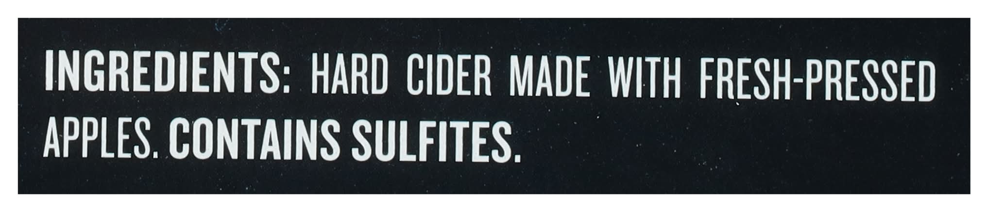 Ingredients: Hard Cider Made with Fresh-Pressed Apples Contains: Sulfites