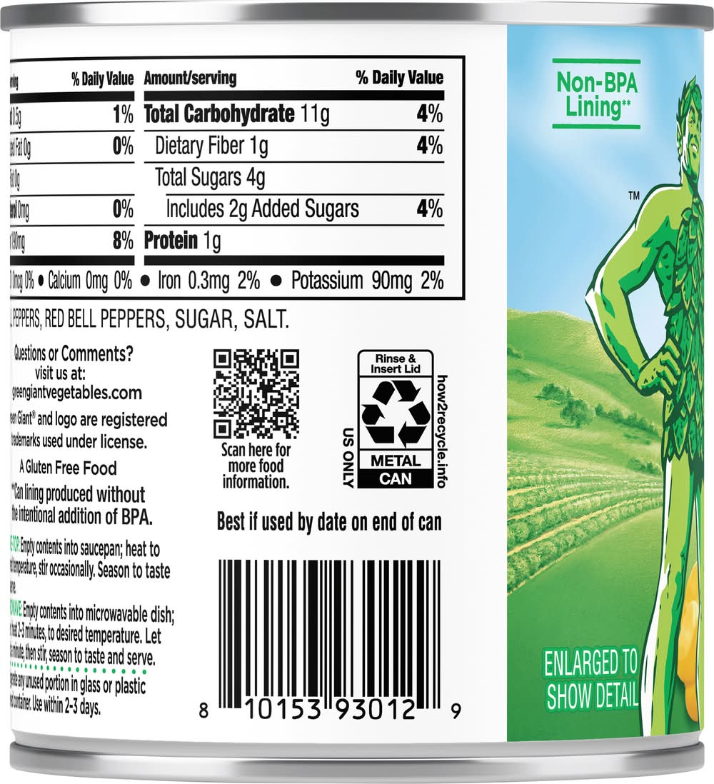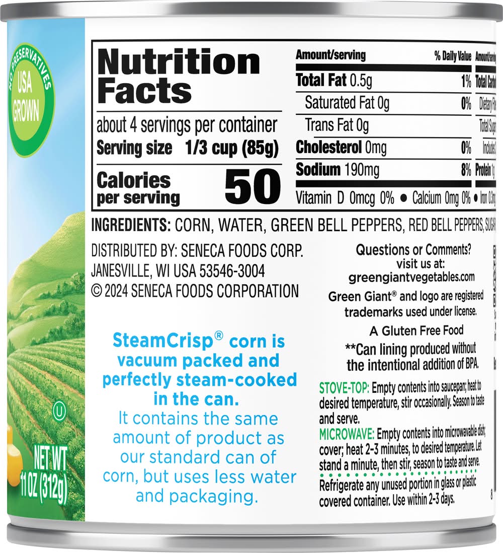 Ingredients: Corn, Water, Green Bell Peppers, Red Bell Peppers, Sugar, Salt Contains: Corn