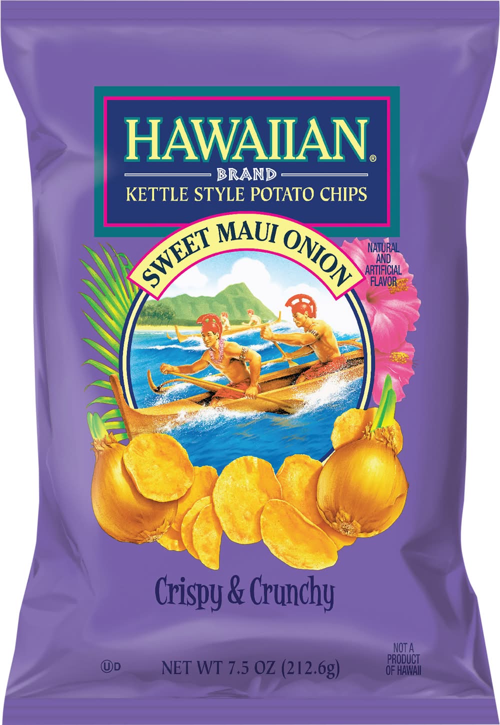 Not a product of Hawaii. Discover a new world of flavor when you crunch into Hawaiian Kettle Style Potato Chips. These crispy, golden chips are cooked to perfection, then seasoned with just the right amount of flavor to capture the authentic tastes of the islands. • Flavor: Sweet maui onion • Pinnacle Foods, 1150 Industry Drive North Algona, WA 98001
