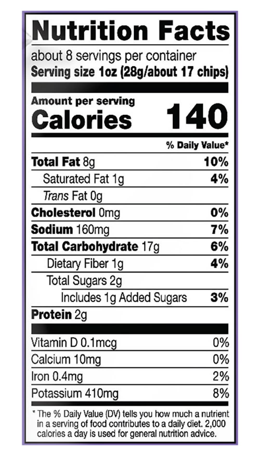 Ingredients: Potatoes, Corn Oil, Sunflower Oil, Cottonseed Oil and/or Safflower Oil, Dextrose, Onion Powder, Whey Powder, Sugar, Salt, Hydrolyzed Soy, Corn Gluten and Wheat Gluten Proteins, Maltodextrin, Torula Yeast, Malic Acid, Garlic Powder, Natural Flavor, Romano Cheese (Milk Cheese Cultures Salt Enzymes), Disodium Inosinate and Disodium Guanylate, Spices Contains: Corn, Milk, Soybeans, Wheat