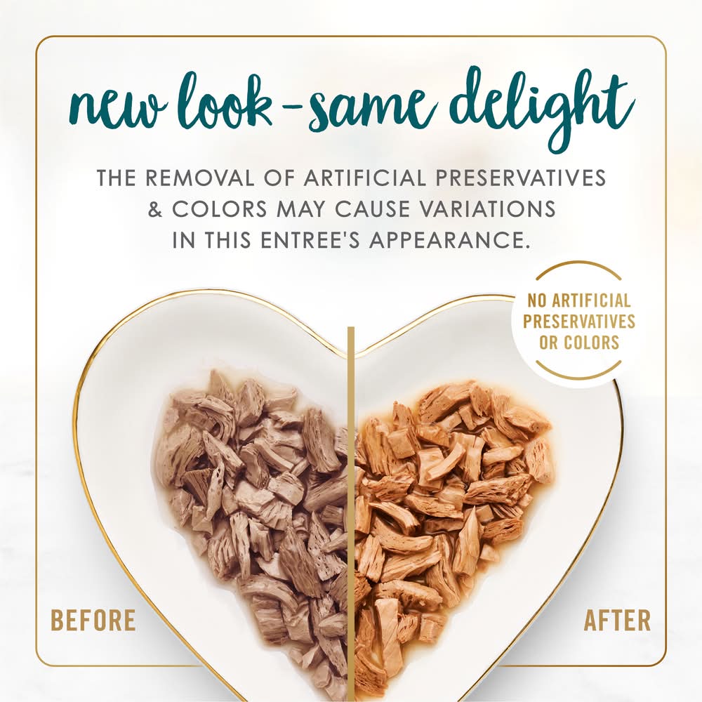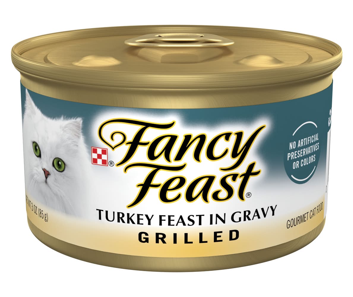 Let delight your cat with an exceptional mealtime experience every time you open a can of . Crafted in partnership with our expert chefs and nutritionists, this protein-rich, wet food for cats features the irresistible taste of real turkey while delivering 100 percent complete and balanced nourishment. Also included in this flavorful, high-quality soft cat food is a blend of vitamins and minerals to support your cat’s whole-body health and a savory cat food gravy to tempt their tastebuds. This premium canned cat food recipe is made without artificial colors or preservatives, so you know your cat is getting everything they need and nothing they don’t. Show your cat how much you care with a can of t wet cat food and watch them savor the spellbinding aroma, enticing texture and delectable flavor sensation down to the very last bite. Packaging: Reusable