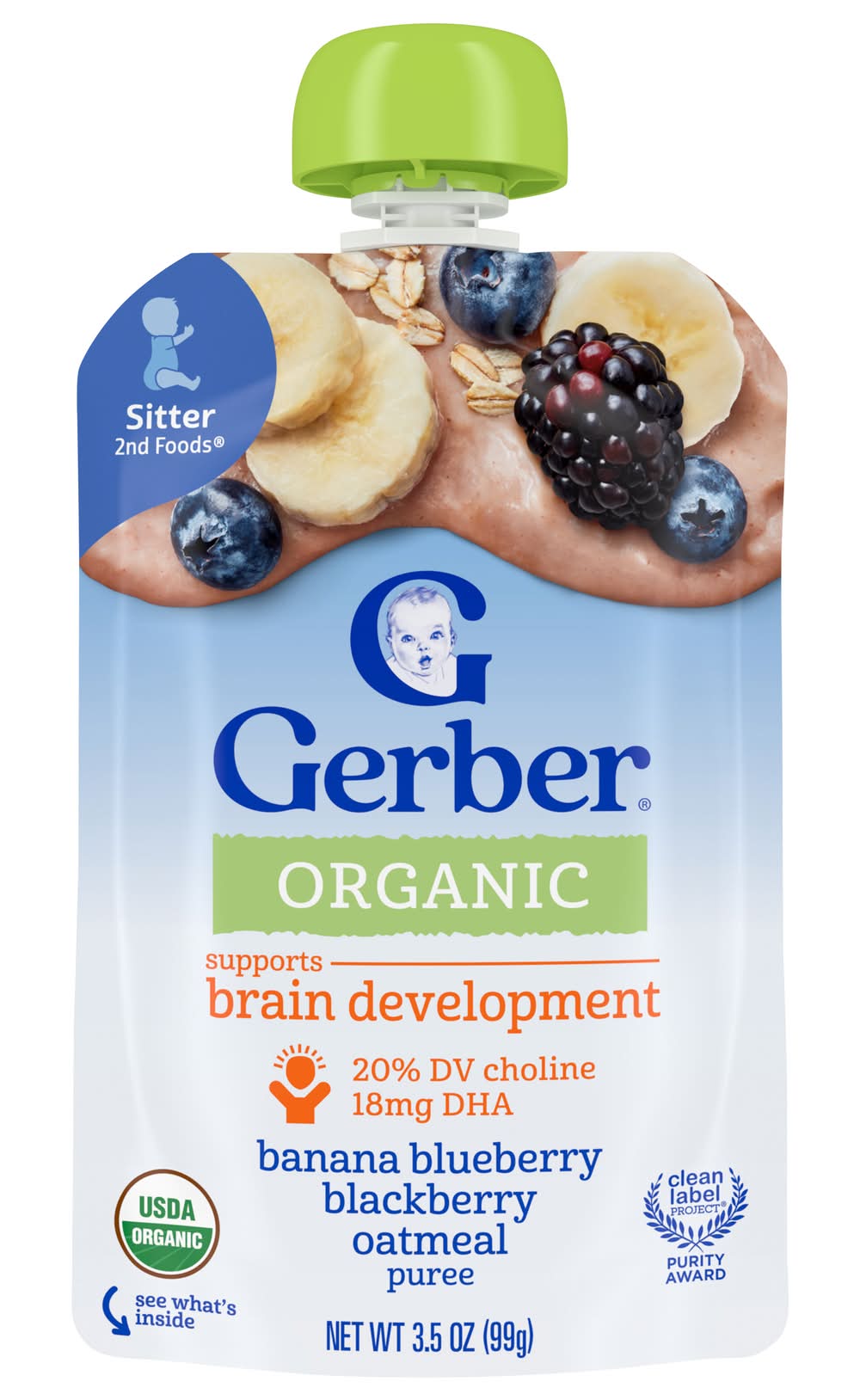 Sitter 2nd Foods Banana Blueberry Blackberry Oatmeal Puree Gerber, Fremont, MI 49413 USA