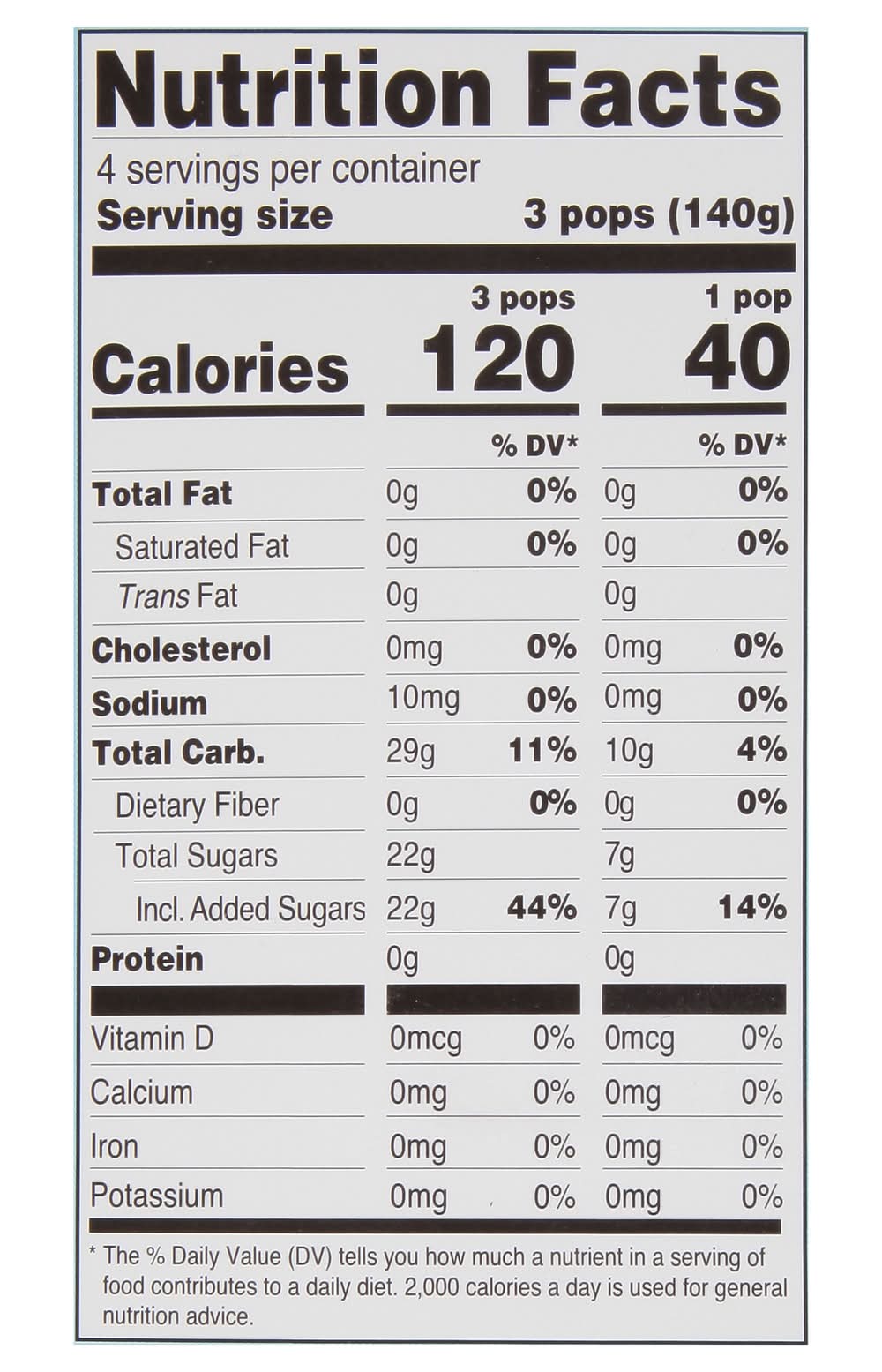 Ingredients: Water, Sugar, Corn Syrup, High Fructose Corn Syrup, Contains 1% or Less of Natural and Artificial Flavors, Citric Acid, Malic Acid, Lactic Acid, Guar Gum, Cellulose Gum, Xanthan Gum, Cellulose Gel, Tara Gum, Carrageenan, Carob Bean Gum, Blue 1, Yellow 5, Red 40. Contains: Corn