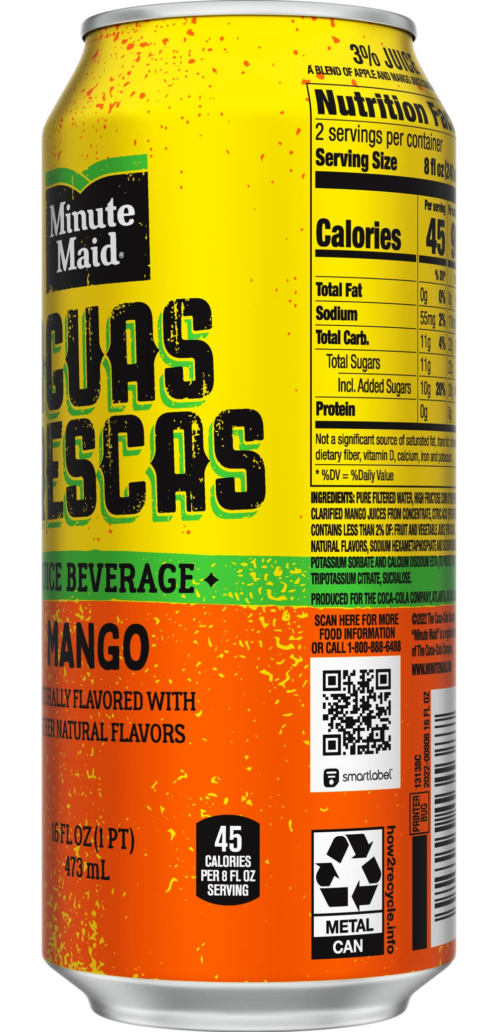 Ingredients: Pure Filtered Water, High Fructose Corn Syrup, Apple Juice From Concentrate, Mango Puree From Concentrate, Citric Acid (For Tartness), Contains 2% Of: Fruit And Vegetable Juice (For Color), Natural Flavors, Sodium Hexametaphosphate And Sodium Benzoate And Potassium Sorbate And Calcium Disodium Edta (To Protect Taste), Tripotassium Citrate, Sucralose. Contains: Corn (Maize)
