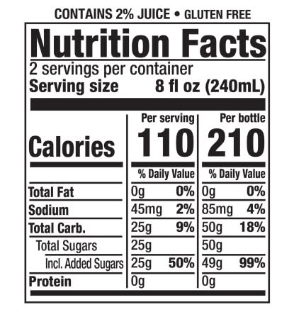 Ingredients: Filtered Water, Sugar, Citric Acid, Lemon Juice Concentrate, Acacia Gum, Salt, Natural Flavors, Vegetable and Fruit Juice Concentrates (for color)