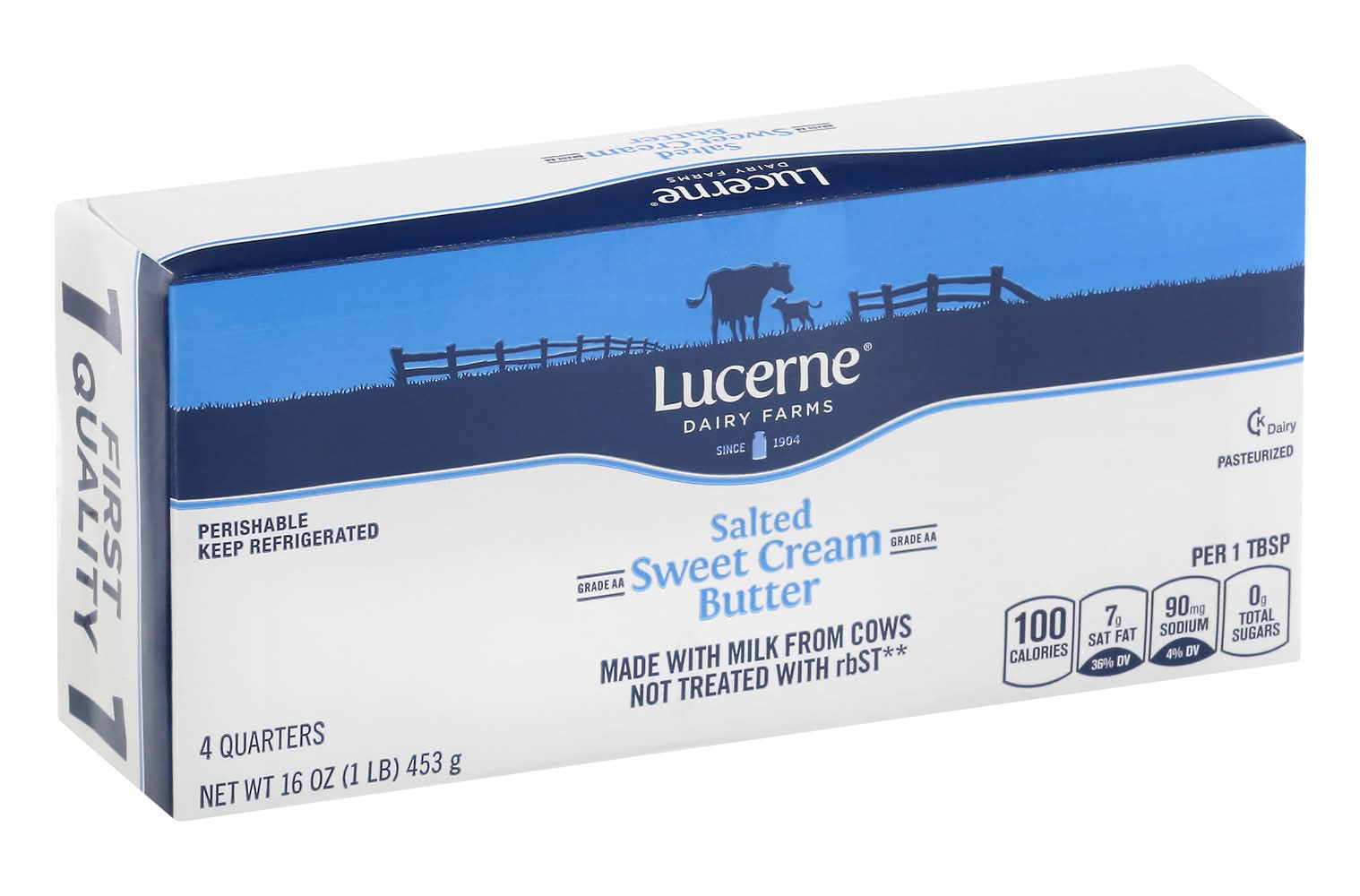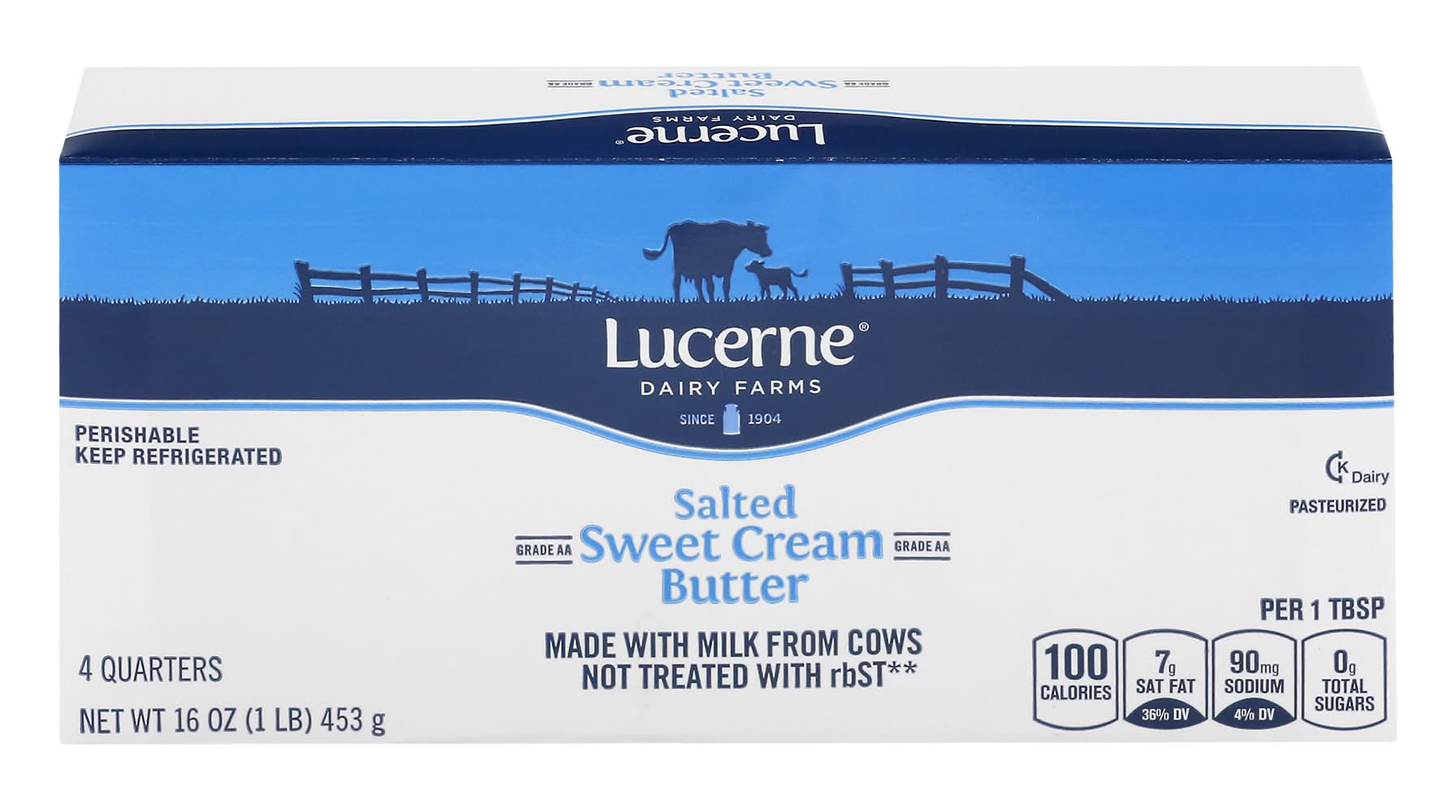 4 quarters. Dairy farms. Since 1904. Made with milk from cows not treated with rbST (No significant difference has been shown between milk derived from rbST-treated and non-rbST-treated cows). Pasteurized. First quality. Guaranteed quality & satisfaction 100%. Grade AA. Lucerne Foods, Inc., P.O. Box 99, Pleasanton, CA, 94566-0009