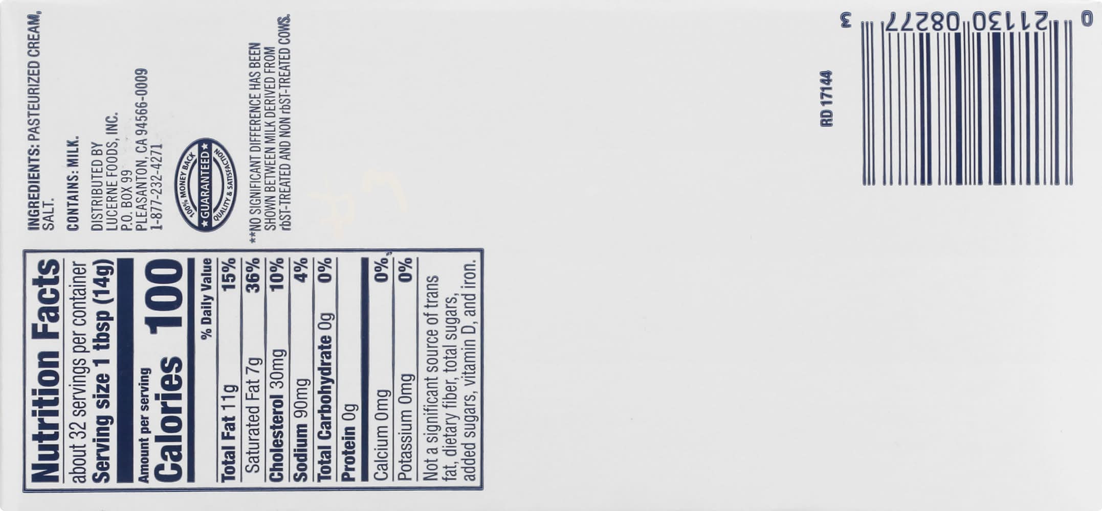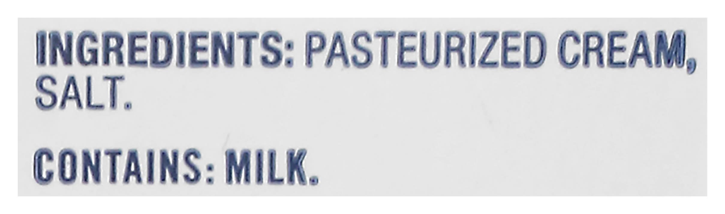 Ingredients: Pasteurized Cream, Salt Contains: Milk