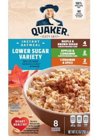 Quaker Lower Sugar Variety Instant Oatmeal, Assorted (9.3 oz, 8 ct)