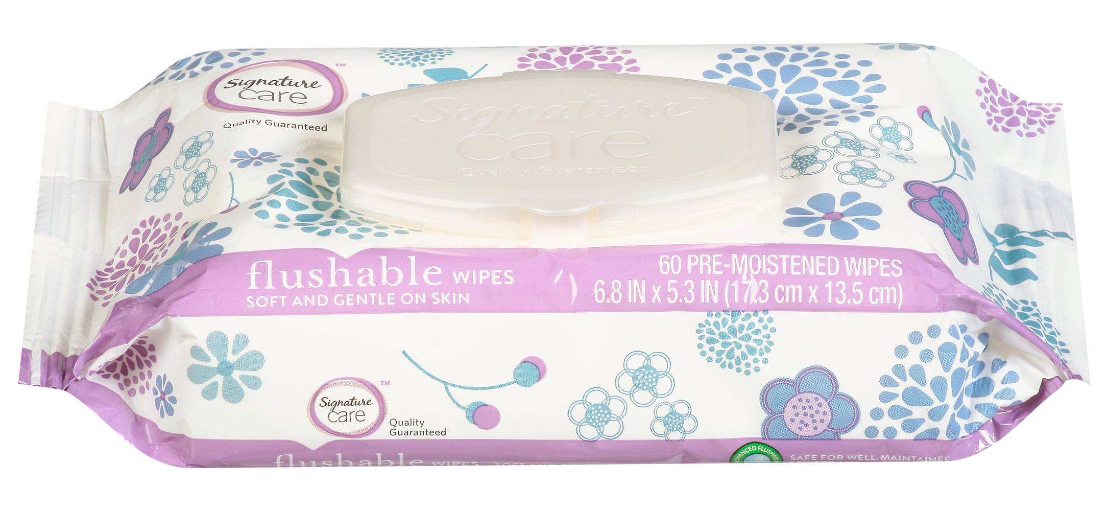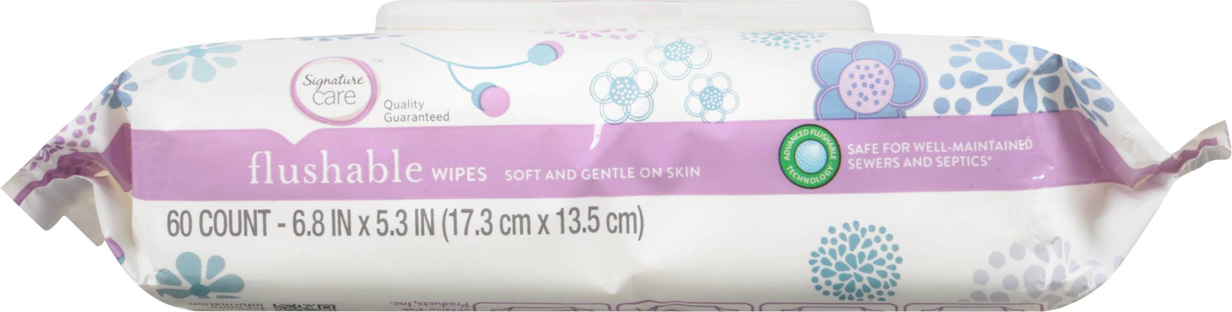 Signature Care Soft & Gentle Flushable Wipes, 6.8X5.3 in (8.9 oz, 60 ct)