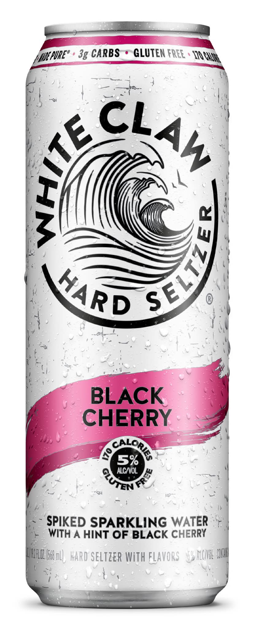 Discover a wave of pure, crisp taste refreshment with a 19.2oz can of White Claw Hard Seltzer Black Cherry. Crafted with quality ingredients, White Claw Black Cherry is made from a blend of seltzer water, gluten-free alcohol, and a hint of black cherry. As our most popular flavor, Black Cherry seamlessly balances the tartness and sweetness of a ripe summer cherry. Each 19.2oz can contains 5% alcohol, 3g of carbs and is gluten free, making it the perfect introduction to the crisp, refreshing taste of White Claw. Please drink responsibly. 21+. • Flavor: Black cherry • Features : gluten reduced • Alcohol by volume: 5% • Packaging: Reusable