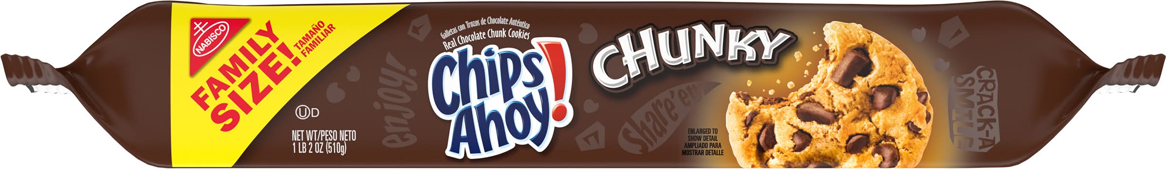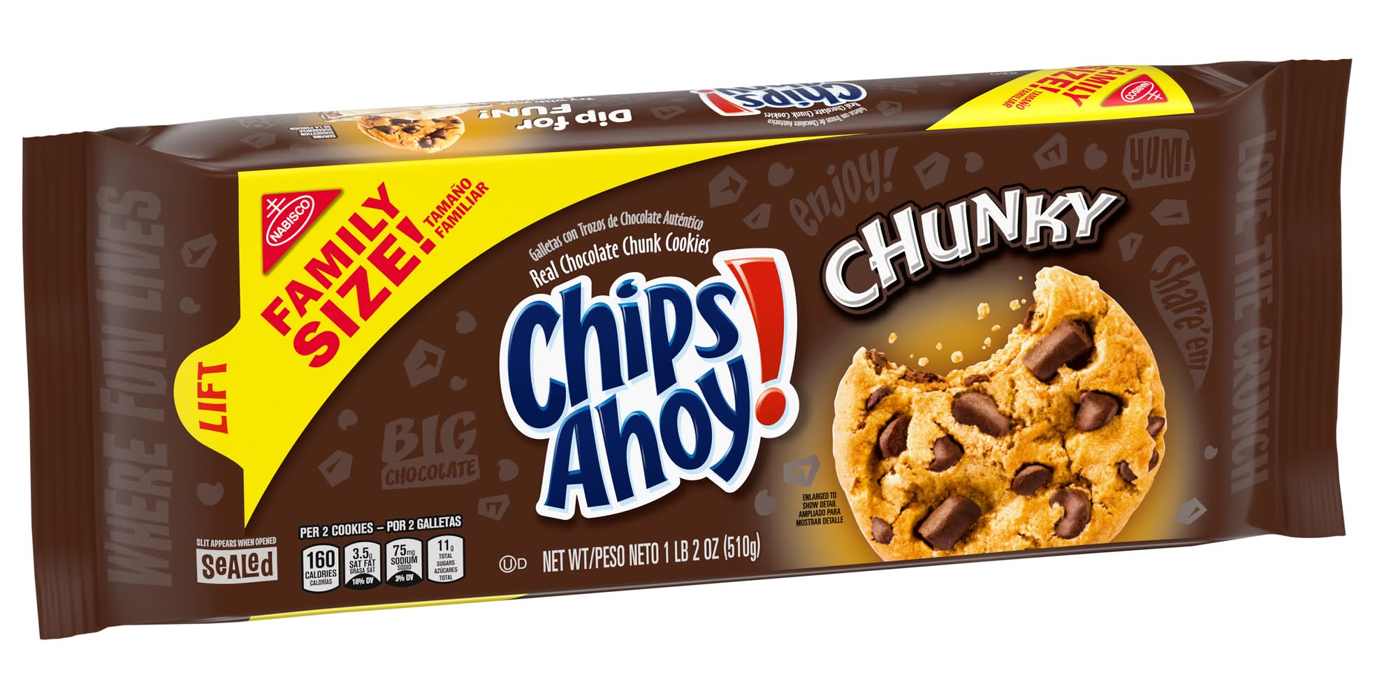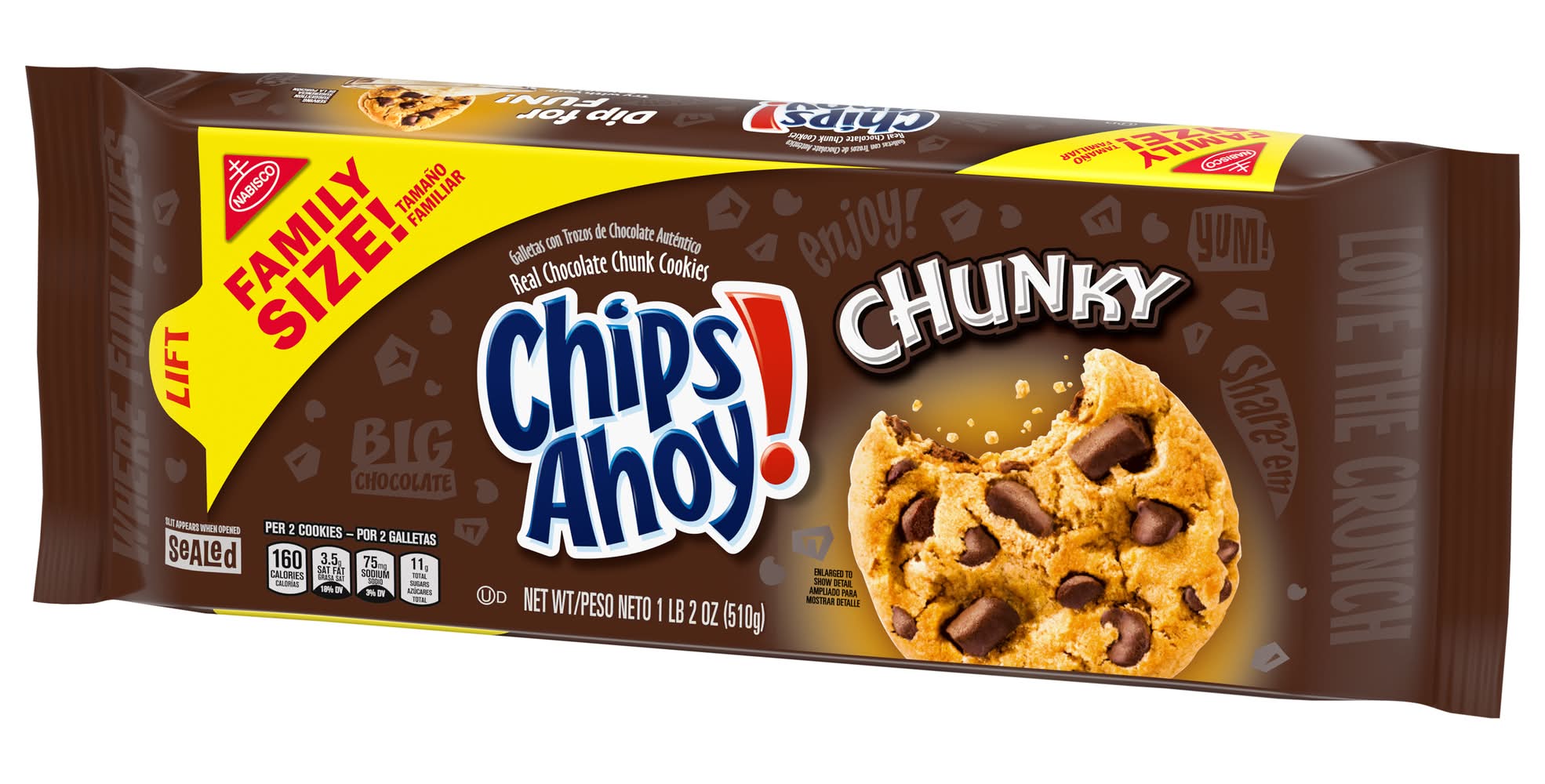 Ingredients: Unbleached Enriched Flour (Wheat Flour, Niacin, Reduced Iron, Thiamine Mononitrate {Vitamin B1}, Riboflavin {Vitamin B2}, Folic Acid), Semisweet Chocolate Chunks (Sugar, Chocolate, Cocoa Butter, Dextrose, Milk, Soy Lecithin), Sugar, Soybean and/or Canola Oil, Semisweet Chocolate Chips (Sugar, Chocolate, Cocoa Butter, Dextrose, Milk, Soy Lecithin), Palm Oil, Leavening (Baking Soda, Ammonium Phosphate), Molasses, High Fructose Corn Syrup, Whey, Salt, Soy Lecithin, Caramel Color, Artificial Flavor. Contains: Wheat, Milk, Soybeans, Corn
