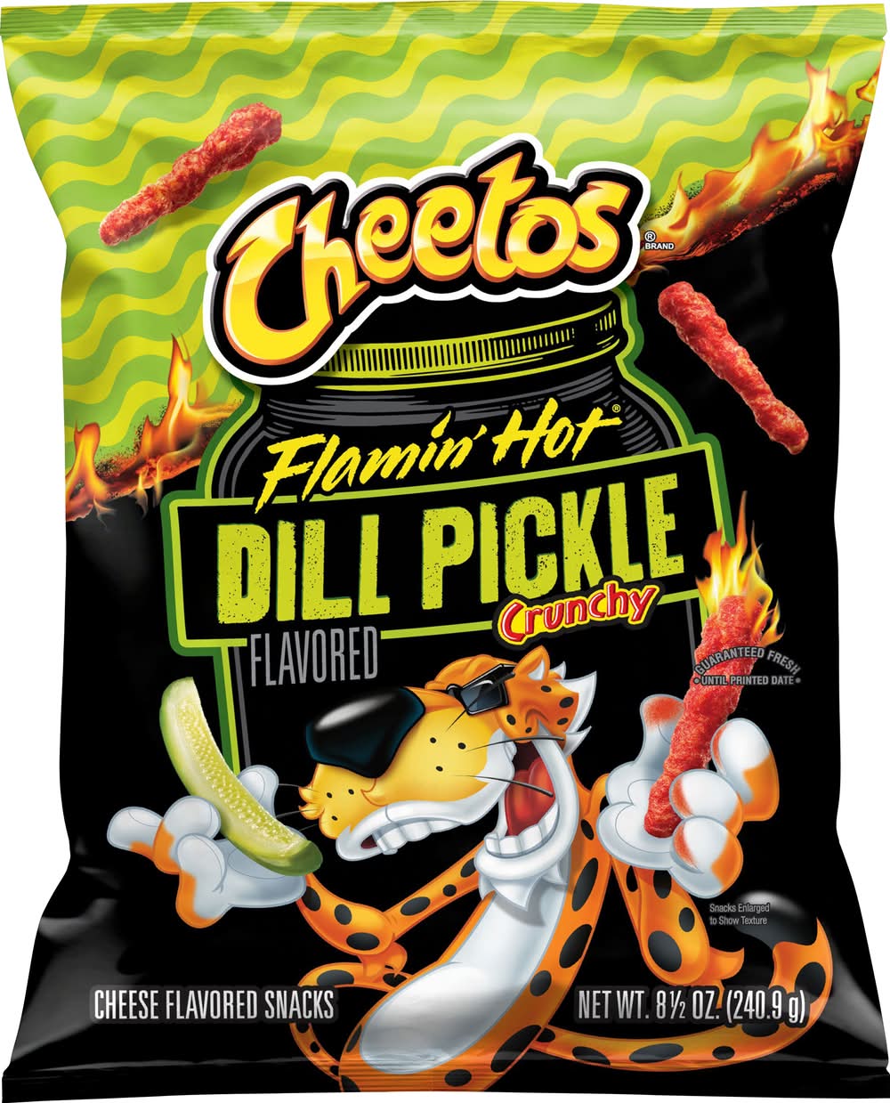 snacks are the much-loved cheesy treats that are fun for everyone! You just can’t eat a snack without licking the signature “cheetle” off your fingertips. Flavor: Flamin' hot dill pickle