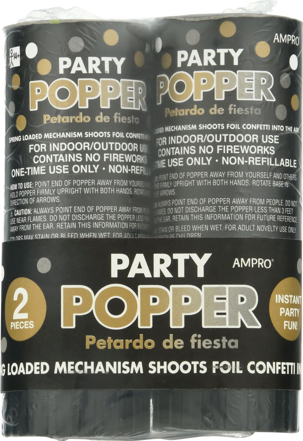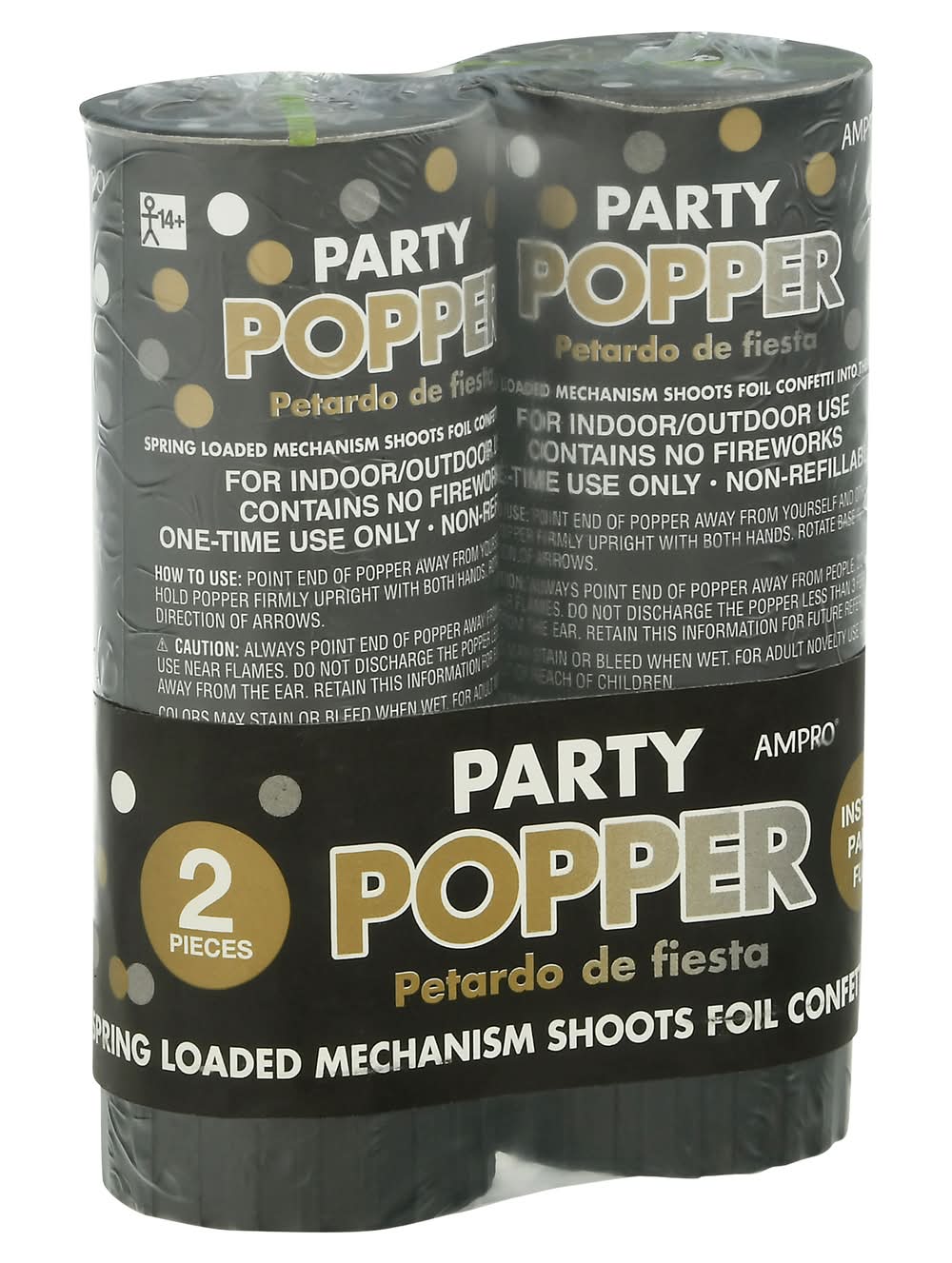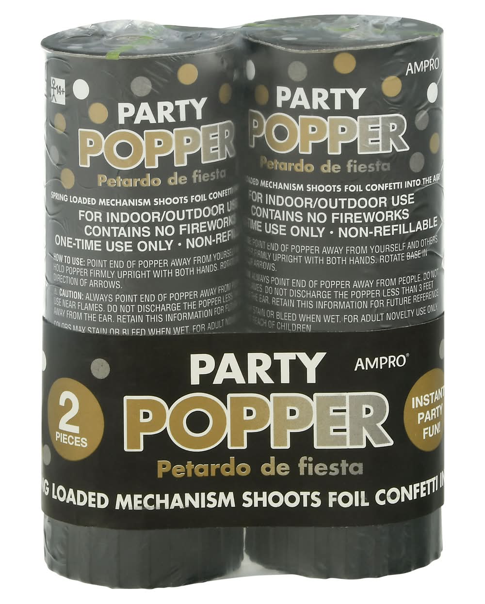 For indoor/outdoor use contains no fireworks one-time use only. no-refillable. how to use: point end of popper away from yourself and others hold popper firmly upright with both hands. rotate base in direction of arrows.caution: always point end of popper away from people. do not use near flames. do not discharge the popper less than 3 feet away from the ear. retain this information for future reference.
