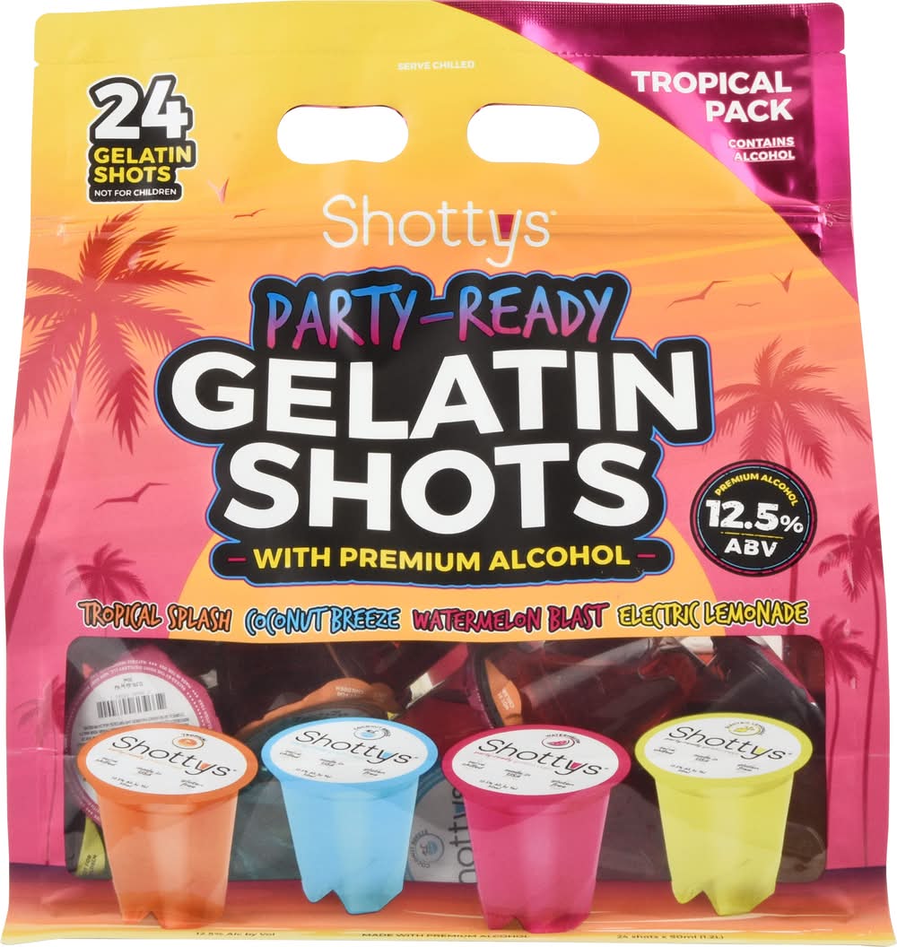 Gelatin Shots, Party-Ready, Tropical Pack • Pack size: 24 • Alcohol by volume: 12%