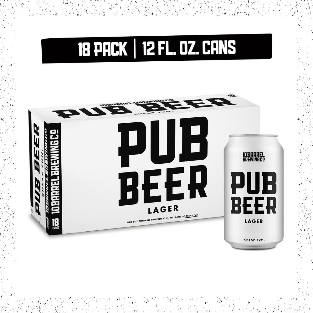 Pub Beer started as started as a project to create an easy drinking craft lager that our brewery employees could enjoy during the day and still be productive. Originally only offered at our pubs, it is now in stores and available for you to crush. Grab yourself some Cheap Fun! 10 Barrel Brewing Co has been brewing your favorite craft beers since 2006 in Bend, Oregon. Organic inspiration. Unfiltered expression. A true lager. Pub Beer is for everyone, it's a lager for the do-ers. Floral hops are present with a slight spice and pear character. Pub Beer is light and crisp with high carbonation and a minor creamy mouthfeel. 10 Barrel Brewing Co. • Pack size: 18 • Alcohol by volume: 5%