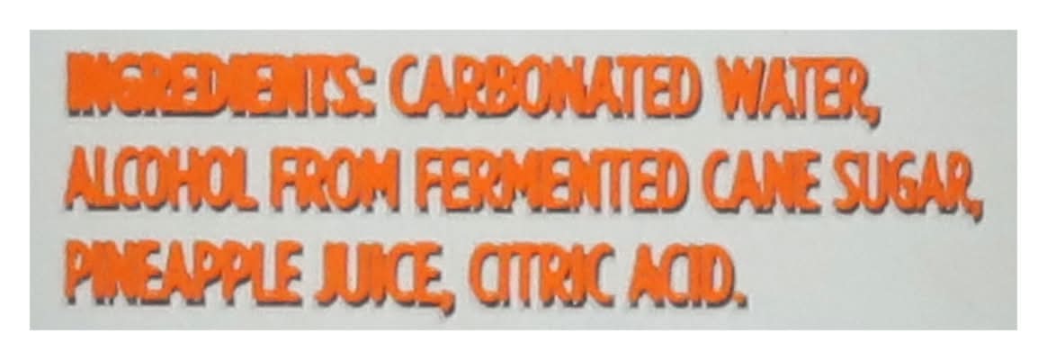 Ingredients: Carbonated Water, Alcohol from Fermented Cane Sugar, Pineapple Juice, Citric Acid