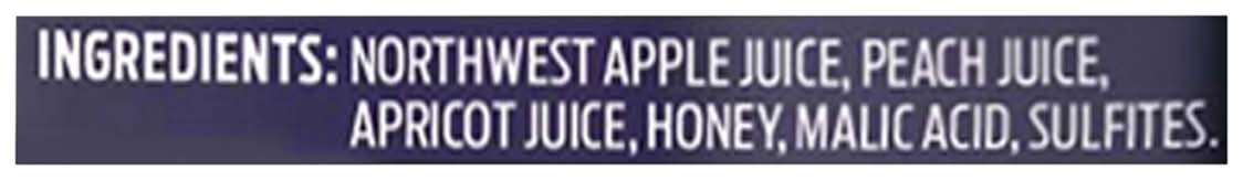 Ingredients: Northwest Apple Juice, Peach Juice, Apricot Juice, Malic Acid, Sulfites Contains: Sulfites