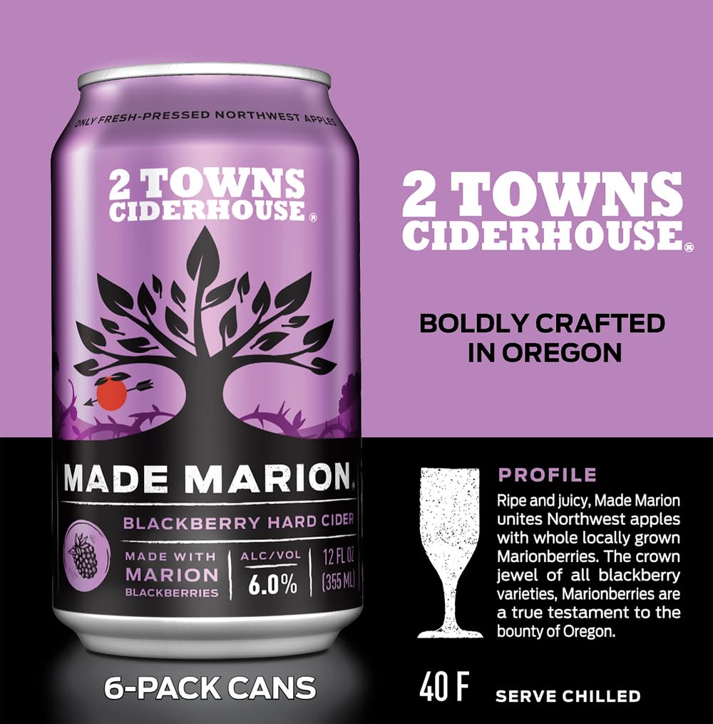 2 Towns Ciderhouse Made Marion Hard Cider, Blackberry (6 x 12 fl oz)