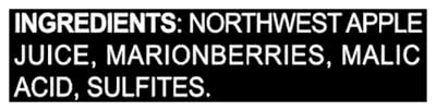 Ingredients: Northwest Apple Juice, Marionberries, Malic Acid, Sulfites