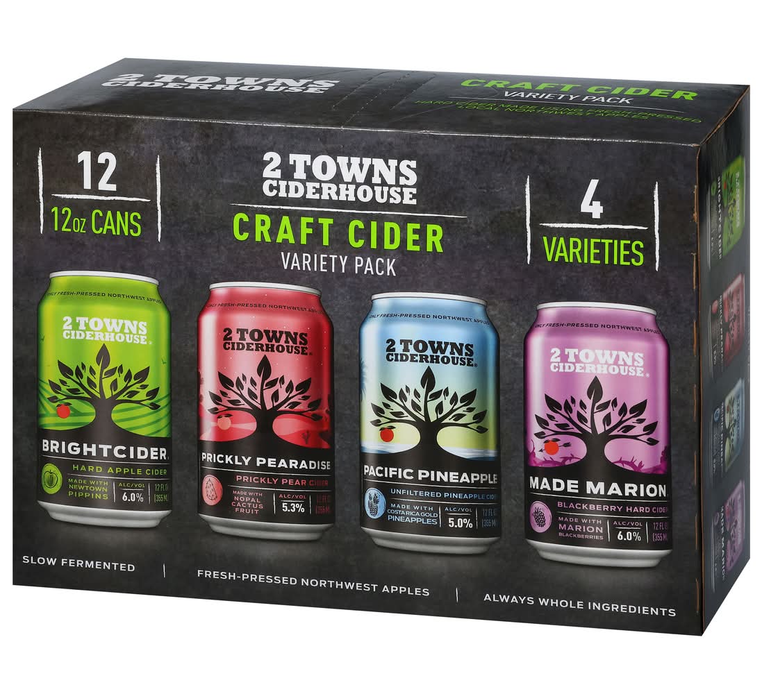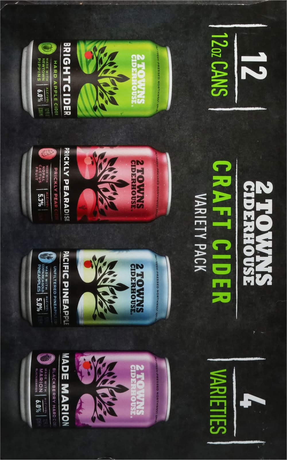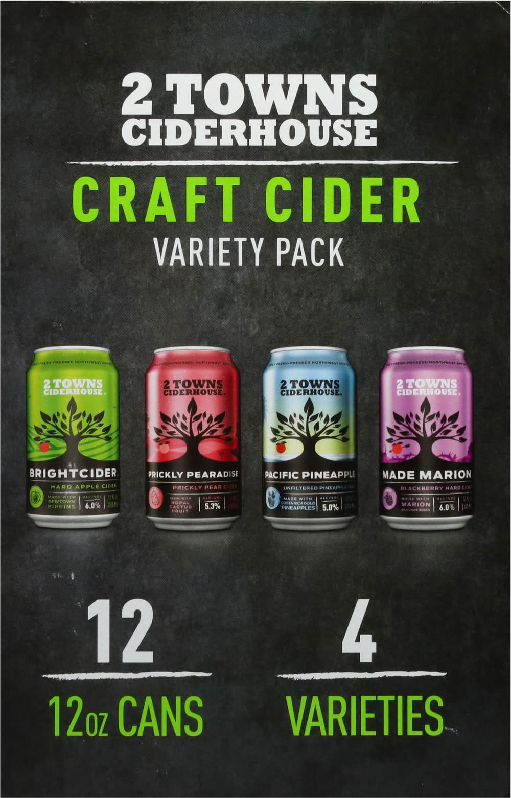 2 Towns Ciderhouse Craft Cider Beer Variety pack, Brightcider-Prickly Pearadise-Pacific Pineapple-Made Marion (12 x 12 fl oz)