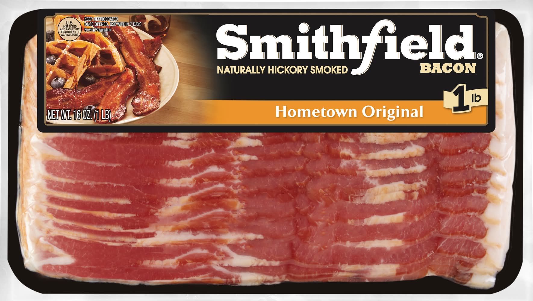 Original Bacon offers authentic hickory-smoked flavor to enhance your everyday meals. Smithfield ensures the highest quality hickory bacon strips by hand-selecting and hand-trimming the finest cuts of pork. Pair this bacon with lettuce and tomato for a tasty BLT, or serve it with eggs and pancakes. Each package is vacuum-sealed to ensure freshness. Smithfield, VA 23431-9003