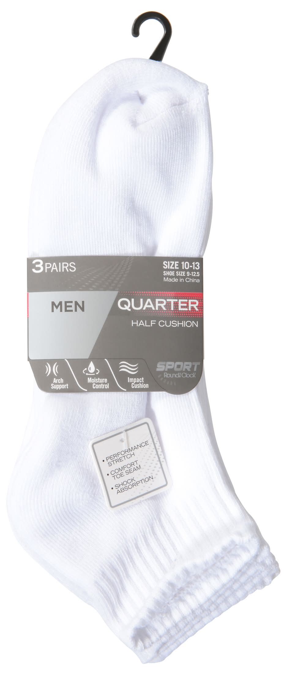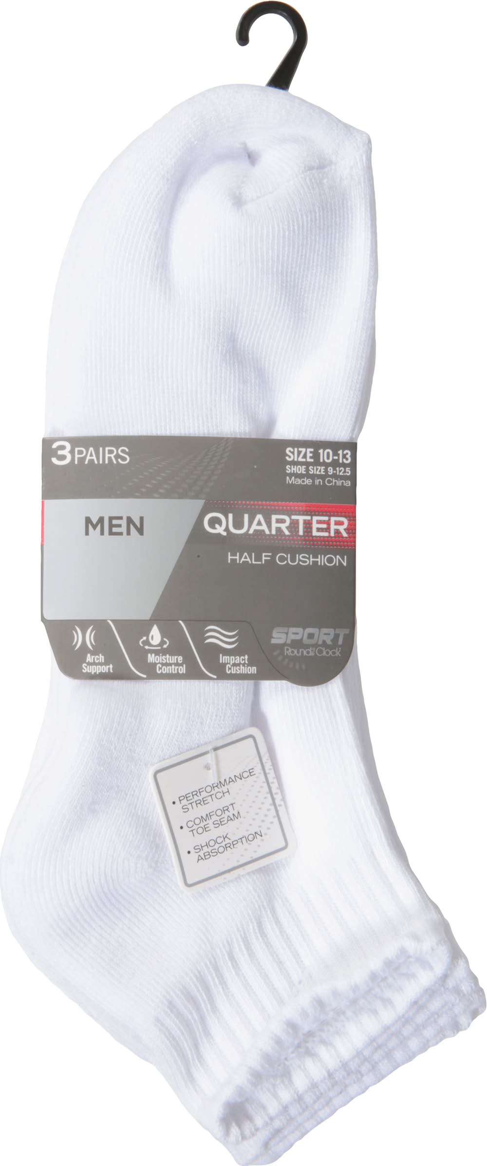Round the Clock Sport Mens Quarter Socks Size 10-13