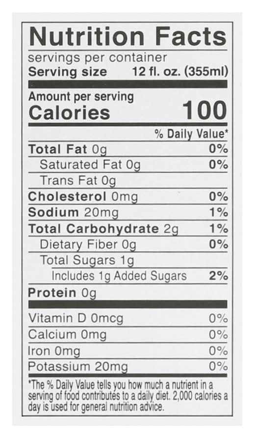 Ingredients: Carbonated Water, Alcohol, Natural flavor, Cane Sugar, Citric Acid, Sodium Citrate, Tripotassium Citrate