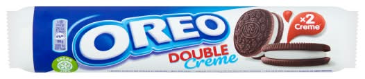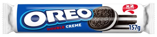 Double your snacking pleasure with double creme cocoa sandwich cookies with vanilla flavor filling. Made with real cocoa, double cream sandwich cookies are great sweet snacks at work or home, and the all-time classic milk-and-cookies partner. Now cream lovers can twist, lick, and dunk twice as much for the ultimate experience or take a favorite dessert recipe to the next level. Double creme cookies are a delectable combination of two cocoa cookies and a smooth vanilla flavored filling and, have been one of the world's favorite biscuits. partners with cocoa life, supporting more sustainably sourced cocoa, working with farmers to protect people and the planet. With a delightful, surprising array of local flavors. But whatever the flavor or form, and wherever you are in the world, iconic twist, lick, dunk tradition continues to unite people as no other biscuit can. Treat yourself to a double cream today. sandwich cookies, consisting of two crunchy cocoa cookies filled with twice as much original vanilla flavor filling. The unique cookie taste starts with cocoa which strongly defines the cookie base color. The perfect snack for any time of day and supreme dunking partner with a glass of fresh milk or ice cream. Available in a handy cookies packet you can take with you wherever you go. Each serving of two cookies contains 140 calories. cookies are great sweet snacks to share with family and friends and a scrumptious way to take your desserts to the next level. Mondelez UK, Freepost MDLZ, Mondelez UK, Uxbridge, UB8 1DH.