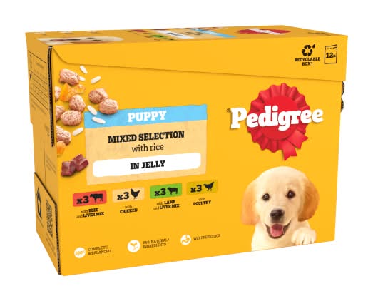Pedigree Assorted, Puppy, Mixed Selection With Rice in Jelly Wet Dog Food (12 x 100g)
