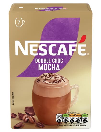 Every cup you drink can help make a difference This NESCAFÉ Mocha is made using 100% responsibly sourced coffee, supporting coffee farmers to improve their lands and livelihoods. Discover more about our responsible sourcing initiatives at www.nescafe.com. • Flavor: Double choc mocha • Pack size: 7 • Packaging: Reusable